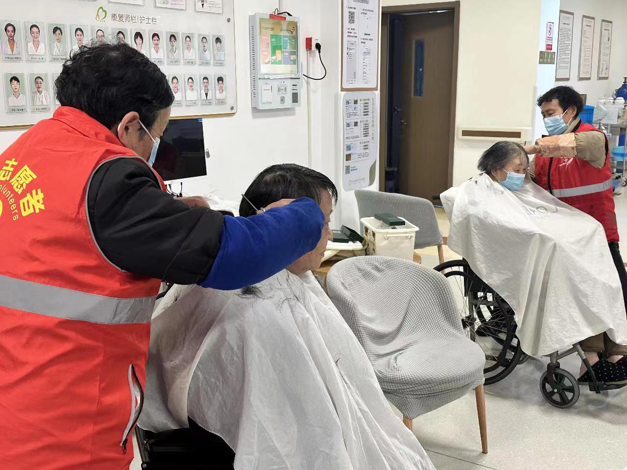 明州康复医院住院部里,身穿红马甲的志愿者娴熟地挥动着手中的剪刀,一个接着一个为老人们修理“头等大事”,忙得不亦乐乎。“阿伯,您想剪一个什么发型呢!”“我想把两边头发剪短点。”志愿者理发师按照老人们各自的要求认真地修剪。伴随着清脆的剪刀声,康复医院老人们的头发变得整齐利落,精神面貌焕然一新。 “我们老年人行动不便,能上门来理发真的太贴心了!”82岁的洪大伯发自内心的说。