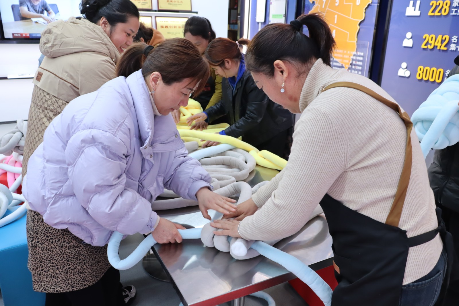 日前, 一群喜爱手工编织的“卡嫂”聚在一起,跟随编织老师的讲授步骤,手眼并用地进行着编织技能学习,现场一派忙碌的景象。