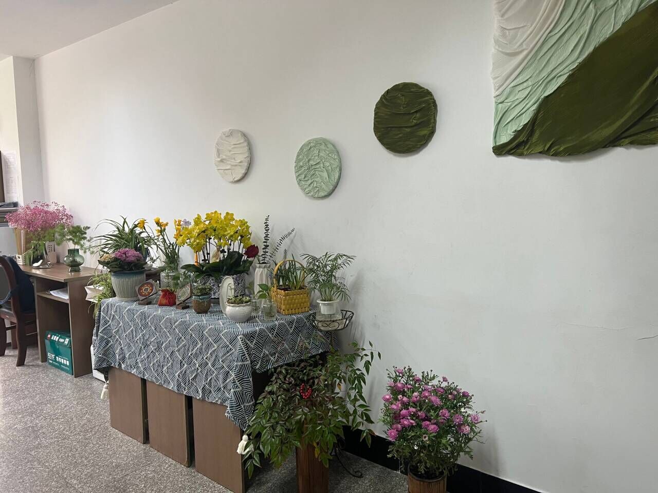 全体教职工积极参与活动,认真打扫,精心布置,营造了整洁有序、书香弥漫、温馨雅的办公环境。步入办公室,窗明几净,书本摆放整齐,公告通知张贴规范,点缀其中的绿植生机勃勃悬挂在墙的书法、绘画作品散发着浓郁的书香之气,师们勤奋工作的样子更是办公室增添了一道亮丽的风景线。整个工作氛围尽显优美舒适、和谐向上。