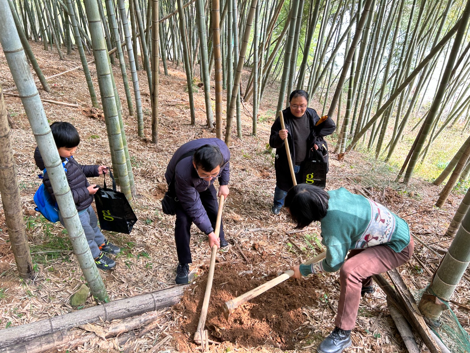 上山挖笋拉开了春游的序幕。大家拿着锄头,在竹林里寻宝。才几分钟的时间,就传来“我找到笋了”的惊喜声,大家投来羡慕的目光。