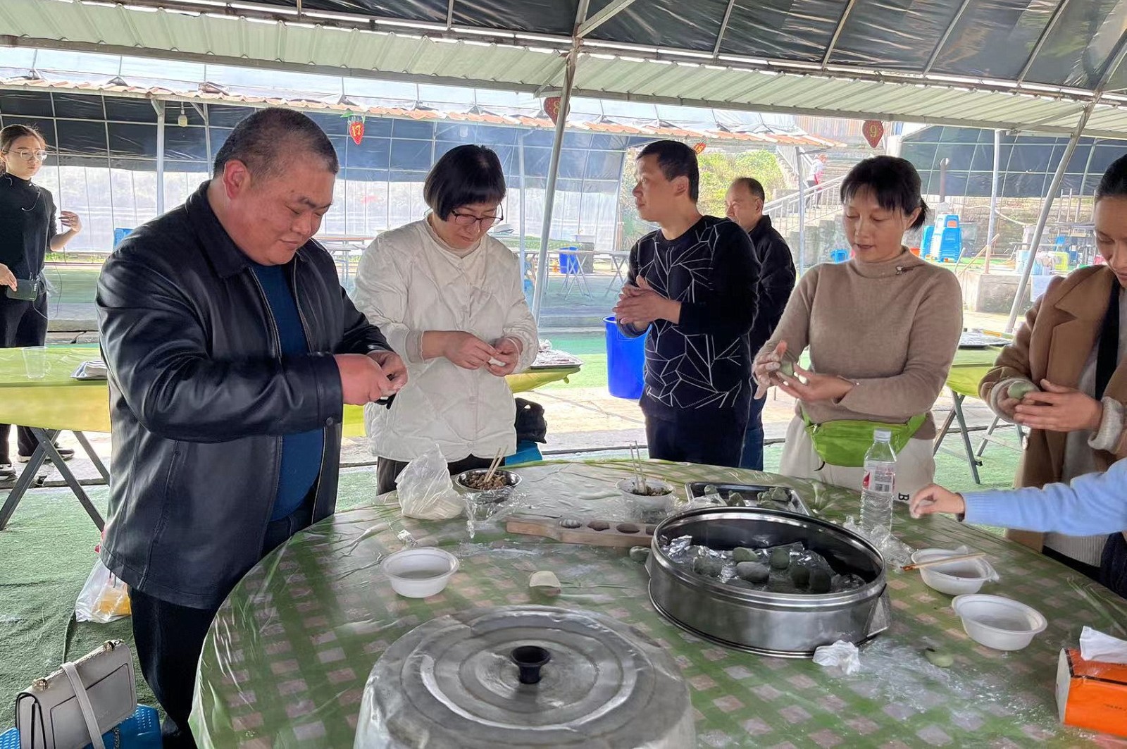 自己动手烧大灶、做烧烤,是这次春游的重头戏。十几组灶锅、桌子、烧烤炉整齐地排列着,静静地等候我们大显身手。老师们分工合作,洗的洗,切的切,烧火的,掌勺的,忙得不亦乐乎。中间的桌子上,裹青饺的、揉青团的、包水饺的、做模型的,各具特色。最外面的烧烤炉上,刷油的、调粉的,井然有序。 一时间,烧烤炉上的“滋滋”声、锅碗瓢盆的碰撞声、劳动的说笑声、灶膛里“哔哔啵啵”的柴火声……交织在一起,构成了一曲欢快的交响乐。