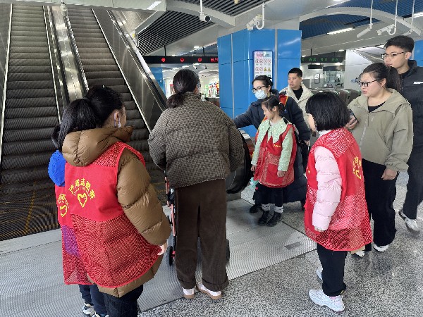 活动中,孩子们首先跟随轨道交通的工作人员从安检、进闸、乘梯、候车到乘车进行参观学习,了解了安全乘坐电梯、扶梯、文明有序进站、禁止携带危险物品等安全知识。随后,孩子们一改往日的乘客身份,穿戴好红马甲,整装待发,化身文明引导志愿者,或手举提示牌候于闸机旁,引导乘客有序刷卡进出;或伫立站台门两侧,提醒乘客有序上下车;或值守在扶梯入口,提示乘客注意脚下......小小志愿者们用实际行动践行雷锋精神,用志愿服务向市民传递安全出行、文明乘车的理念。“以前都是作为乘客进出地体站,今天作为工作人员在地铁站‘工作’,感觉非常不一样,不仅让我学到了很多安全出行的知识,还通过实践活动进行了巩固,同时也帮助了别人,真的收获很多!”家住东城华园的叶梦茹参加完活动后,高兴地跟社区工作人员说道。