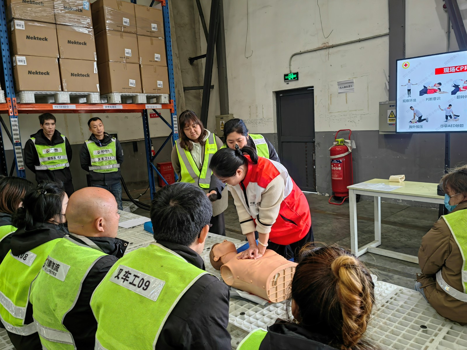 突遇晕倒工友如何判断意识?心脏骤停“黄金4分钟”如何正确处置?一堂由企业“点单”的课程,在梅山保税港区亚集物流车间精彩开讲。梅山成校教学点金创工业社区网格在走访企业过程中,了解到职工普遍存在应急救护知识的盲区,从切实解决企业需求出发,提高企业职工面对突发状况时的应急救援能力,联合街道红十字会为企业送上红十字应急救护普及讲座。本次活动以线下实景教学的方式开展,将课程直接送进亚集物流工作车间现场。
