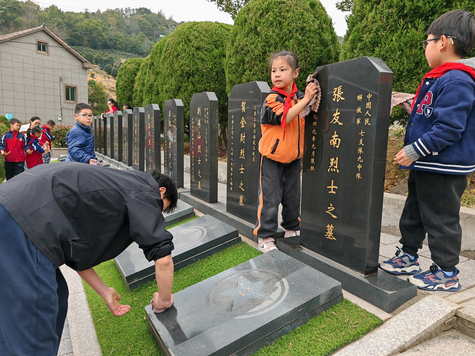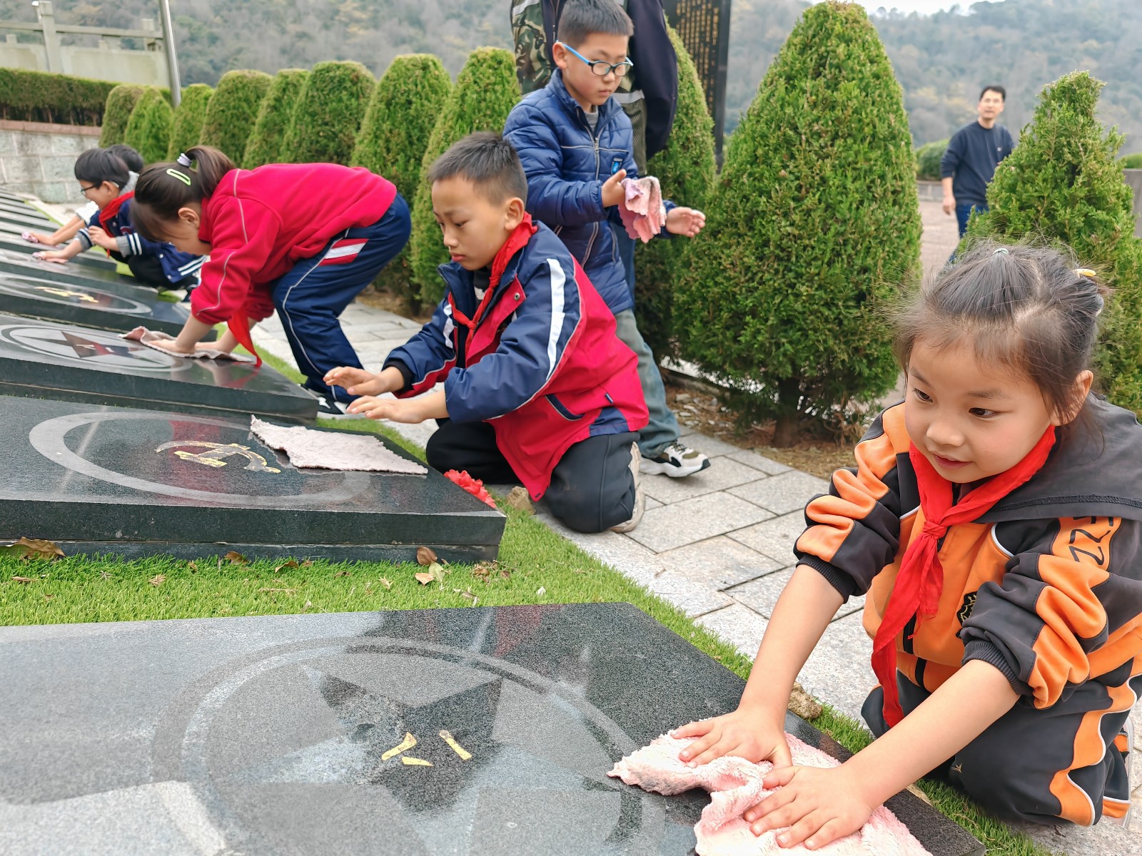 活动中,“五老”人员和青少年分组,一部分为全部英烈擦拭墓碑,一部分在革命烈士纪念园的展厅、绿化带等地带展开清扫,重点清除灰尘、杂草、落叶等。结束后,大家都肃然列队,怀着无比崇敬的心情逐一献花鞠躬,并向烈士默哀,为保卫国家而献出热血的革命英烈表示深深的哀悼。随后大家围在一起,听五老志愿者虞定永讲述在此处的革命烈士事迹,重新追忆那段悲壮的历史,并警醒青少年们警钟长鸣,勤奋学习、立志成才,用实际行动为中华民族伟大复兴作出自己应有的贡献。