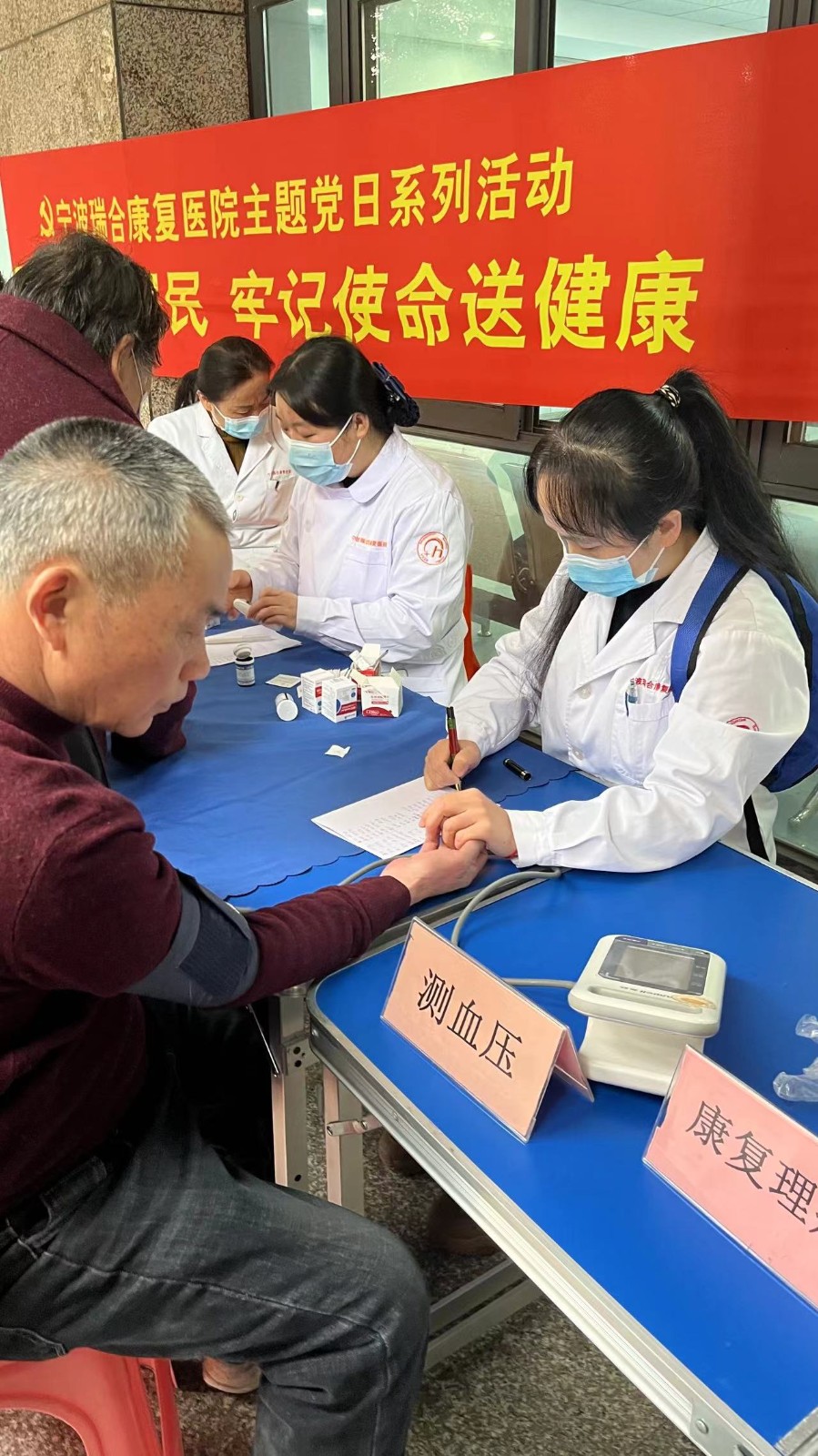 医疗团队一行人为居民把脉问诊,提供测血压、测血糖、眼科和口腔检查、康复理疗等项目,还提供饮食、运动、生活习惯等方面的建议,让居民了解自己的健康状况,提高健康意识。