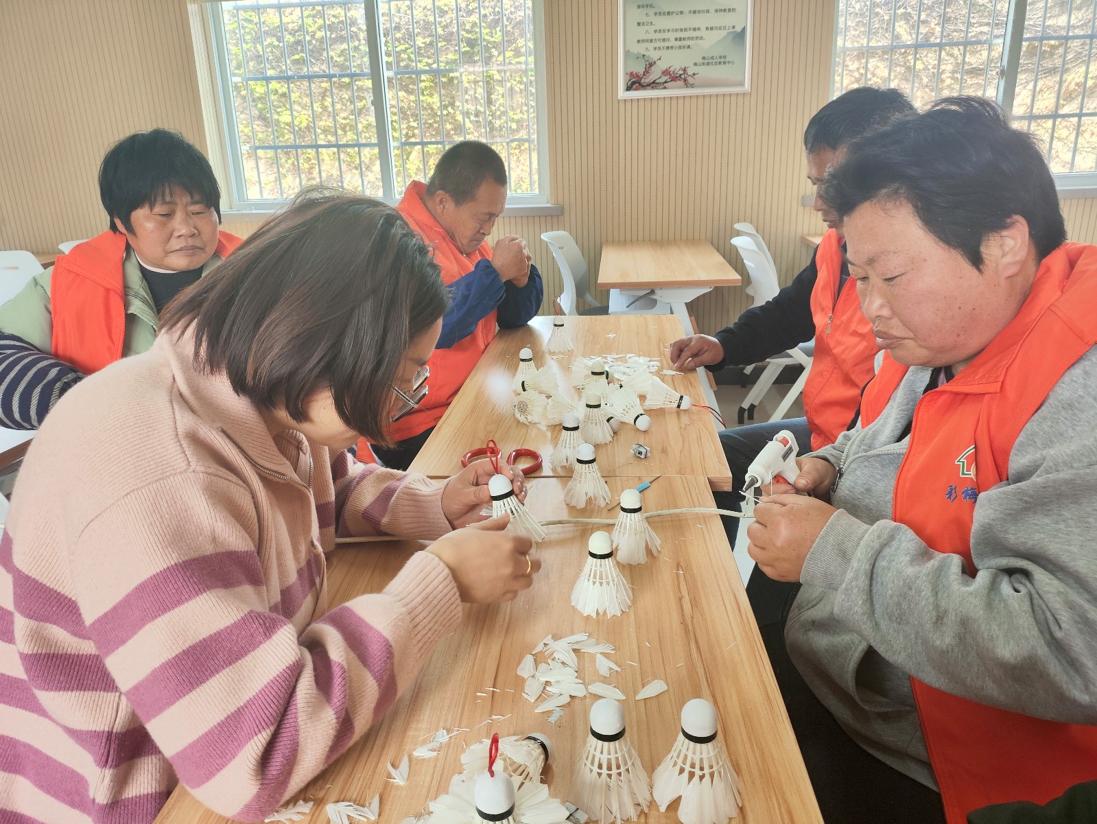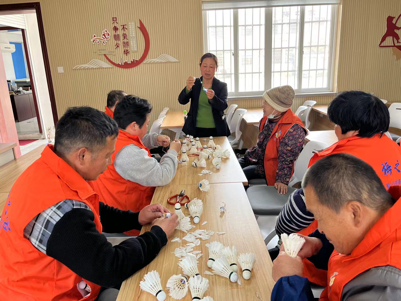 一大早,老师准备了羽毛球、胶水、各类活动所需材料,老师首先讲解了制作步骤,接着进行了实操示范,在李老师和工作人员的指导下,学员们积极动手参与。