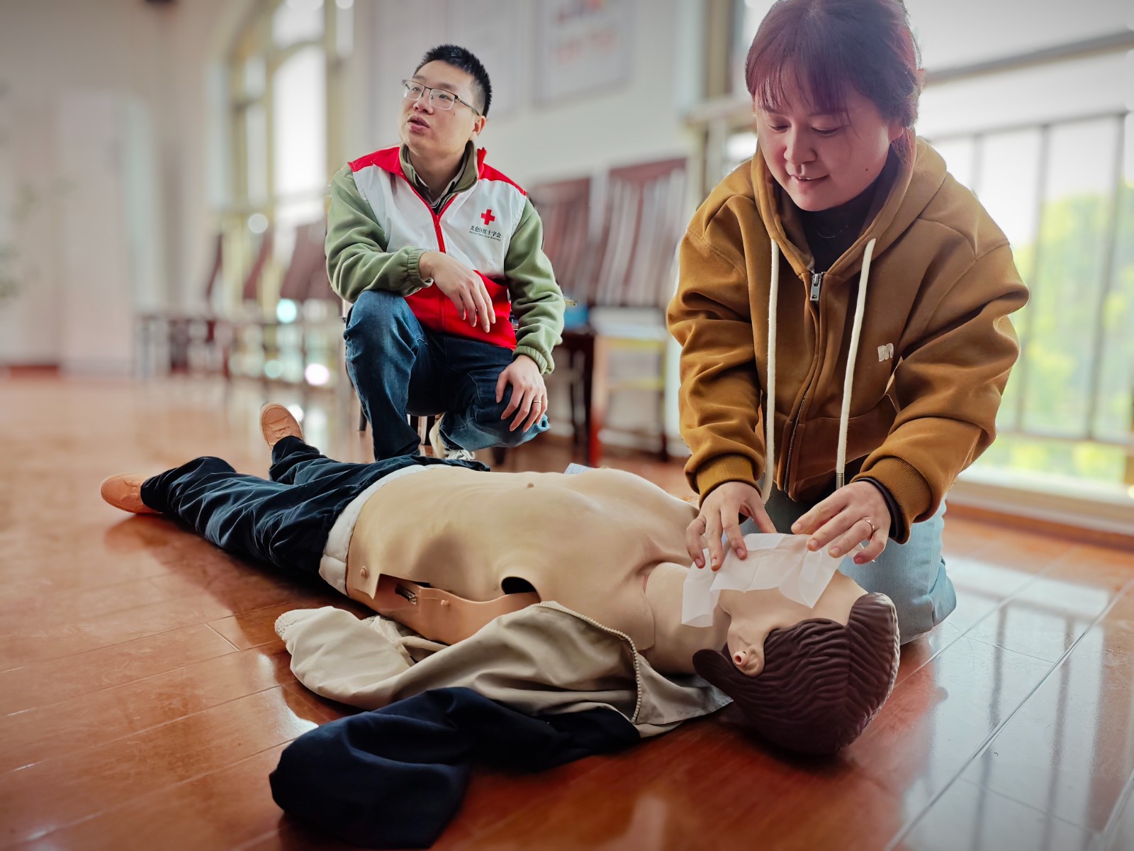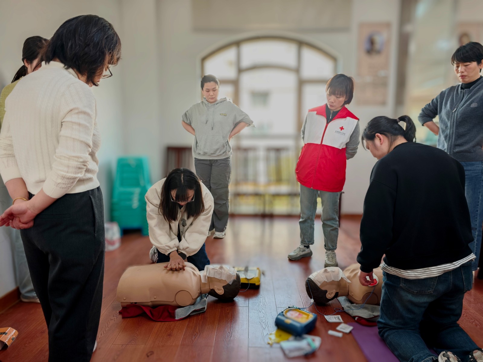 4月9日起,为期三天的大碶街道社工救护员培训课程在坝头社区党群服务中心开讲。CPR心肺复苏、AED自动体外除颤器操作、气道异物梗阻、创伤救护......一节节急救理论概述、实操课堂,让学员们沉浸式体验一把如何让一个急救“小白”变“能手”。