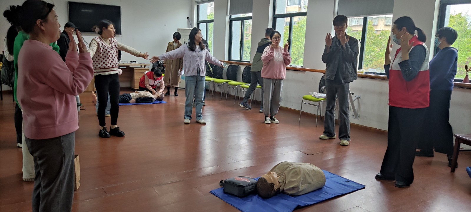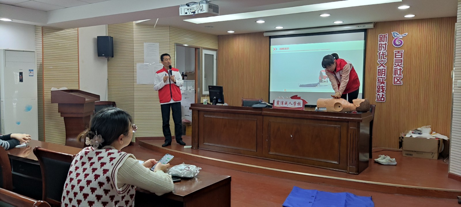 4月11日,由霞浦成校主办的“守护生命  ‘救’在身边”红十字会心肺复苏十AED专项取证培训在百灵社区举行。培训由北仑区红十字会讲师雒海强、苏丽宣、王燕军主讲、教授,38位成人高中学员、居民参加。