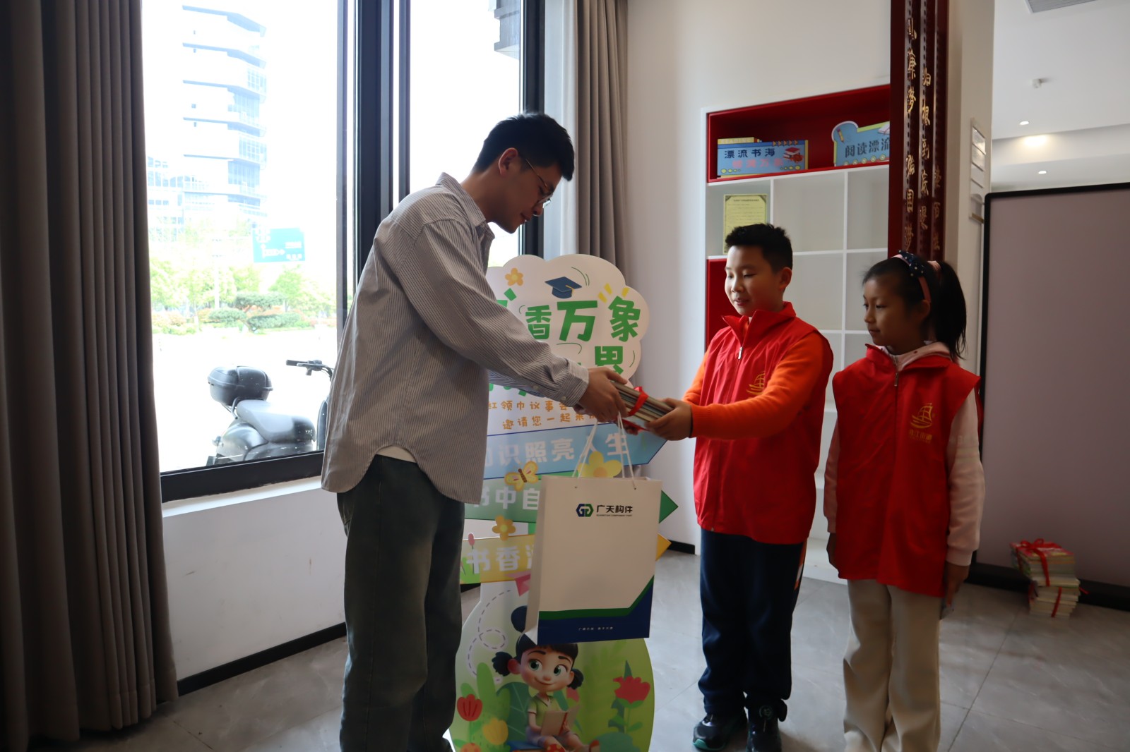 为满足社区孩子们多样的阅读需求,江北区人大代表郑嵘联合浙江广天构件党支部现场捐赠了一批适合青少年阅读的书籍给万象社区图书漂流角。涵盖了社会科学、历史地理、中外文学、自然科学等门类,共计100余册。现场,孩子们看到崭新的书籍,闻着纸墨的扑鼻香,纷纷迫不及待打开书读了起来。另外还有一些小朋友更是当起了活动“代言人”,面向社区居民介绍“图书漂流”活动内容,倡议大家一起参与到活动中来。
