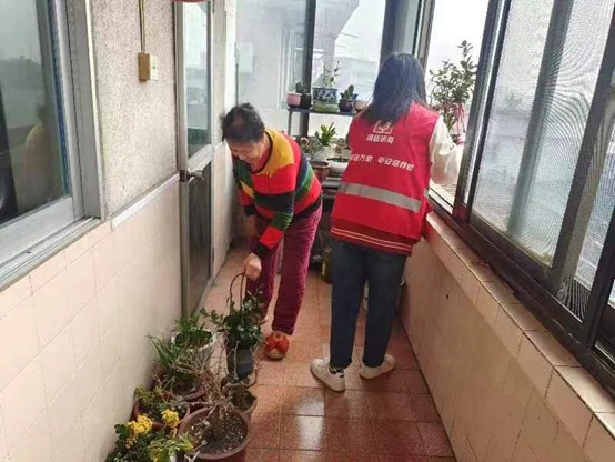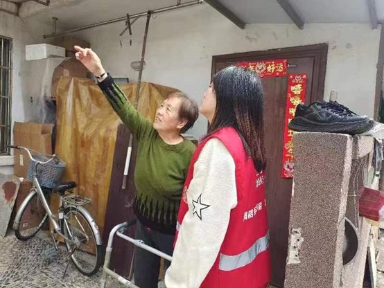 一个阳光明媚的午后,26幢102的徐奶奶正躺在屋内午休,“嘭”的一声巨响惊醒了徐奶奶,仔细一看是一根长长的钢管从楼上掉下来砸在楼下的雨棚上,又猛的反弹到了自己家的院子里。“小赵啊,真是吓死人了,幸亏我今天刚好在屋里休息,要是像往常在院子里晒太阳的话,那后果不敢想象。”徐奶奶拍着胸脯,心有余悸的向网格员赵微说道。