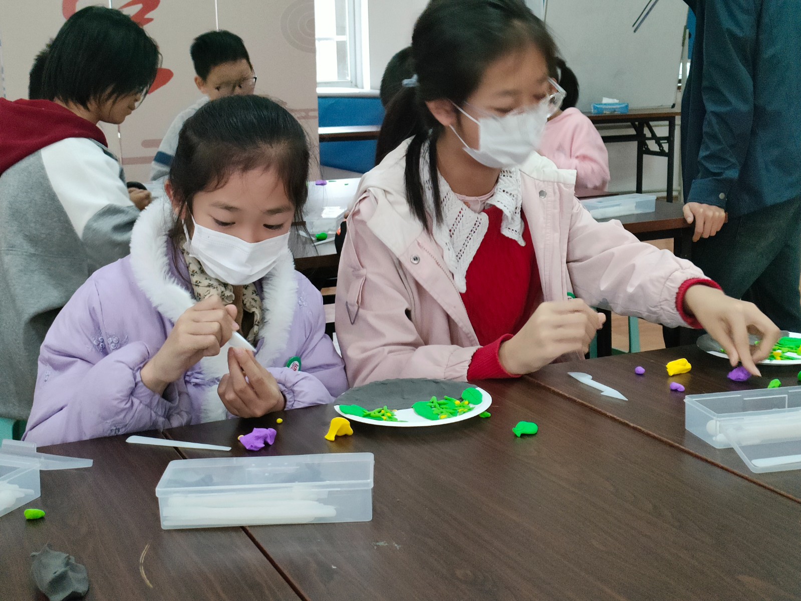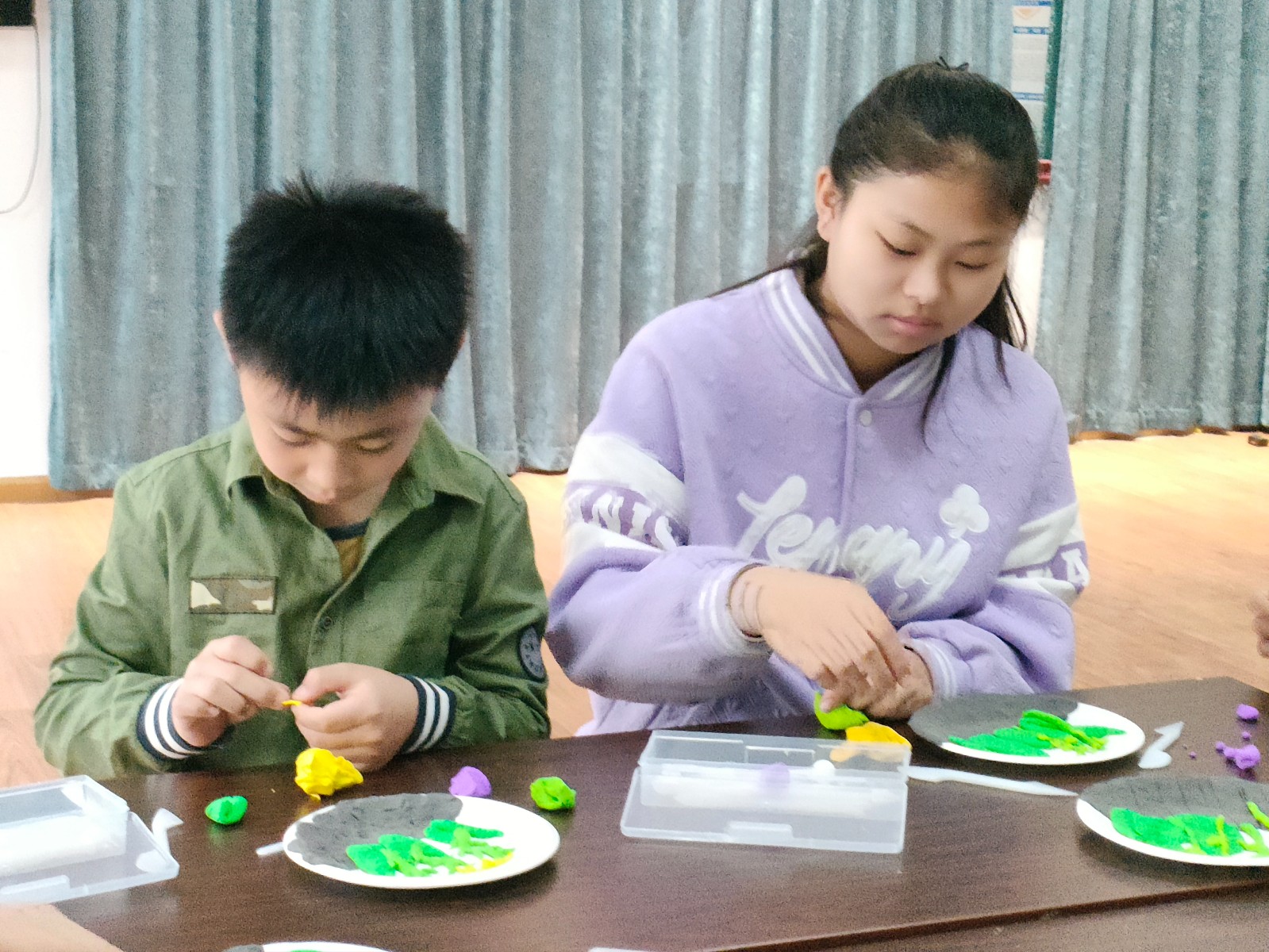 黄老师深入浅出地向孩子们介绍了泥塑的基本知识和技巧。他强调,泥塑不仅仅是塑造形象的过程,更是一个展现个性和创造力的舞台。随后孩子们迫不及待的拿起工具和黏土动手尝试。在黄老师的耐心指导下,他们一步步压、捏、搓,将一块块普通的黏土塑造成形态各异的艺术品。不一会儿,一幅幅充满童趣和想象力的黏土作品便呈现在大家眼前。
