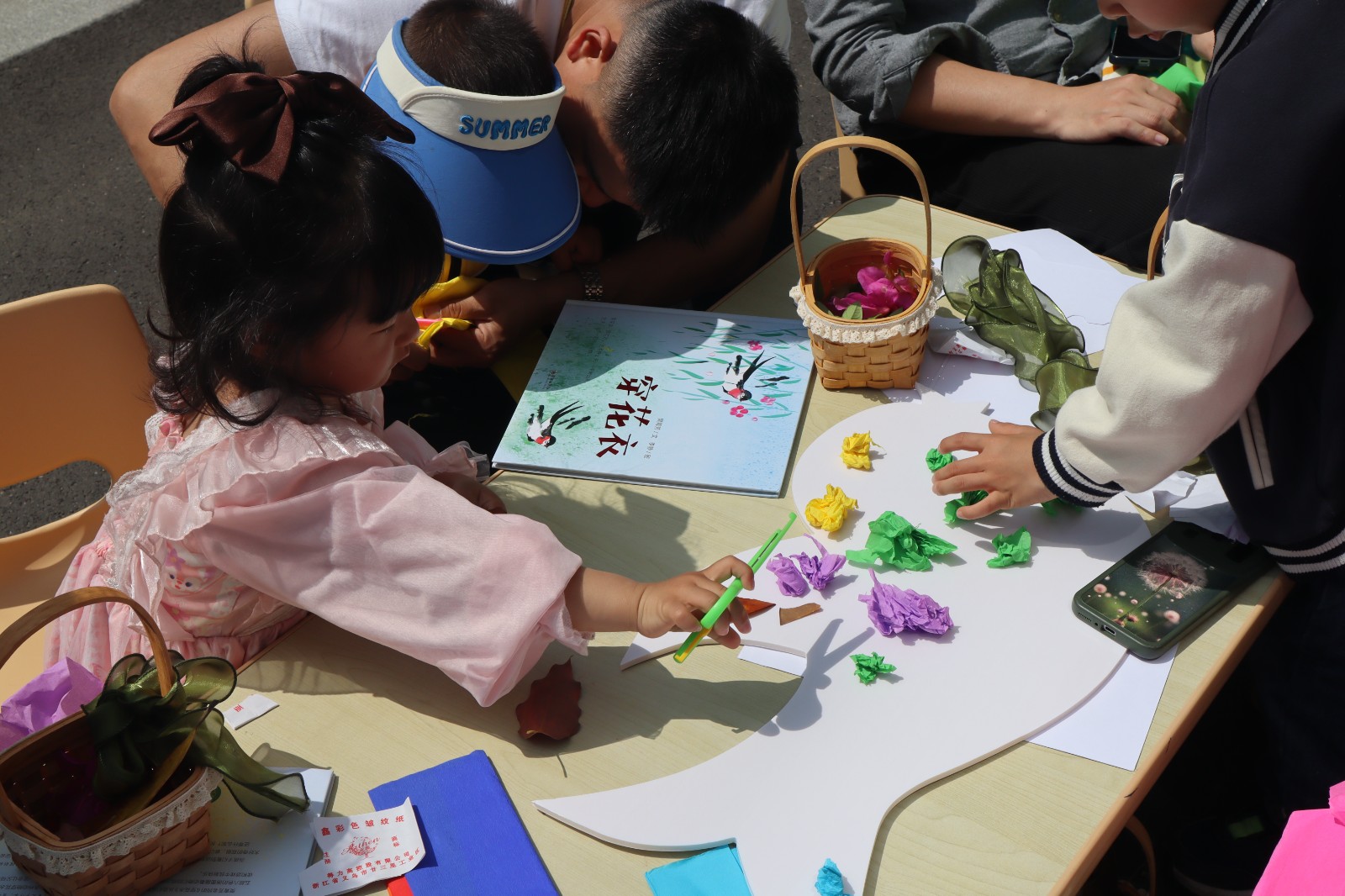 为锻炼孩子们的颜色认知和动手能力,老师们还设置了“为小燕子穿花衣”环节,家长们与孩子们互相协作,用五颜六色的皱纸和从公园里收集的树叶、花瓣给小燕子穿上了漂亮的新衣。最后孩子们在欢乐的音乐律动中结束了本次活动。