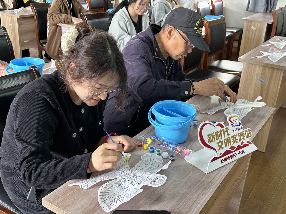 庄一社区:纸鸢翩翩,彩绘春天”DIY彩绘风筝活动