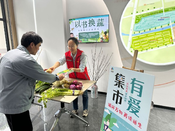 “捐赠一本闲置书籍,就能换一份有机蔬菜。”活动现场,摆放着青菜、土豆、西兰花、黄瓜等新鲜蔬菜,社区志愿者热情地为参加活动的居民讲解兑换规则,兑换蔬菜,并对居民带来交换的书籍进行仔细的检查,以确保书籍内容健康、积极。居民们纷纷表示,此次活动不仅让家中闲置的书籍找到了新的归宿,也让阅读变得更加“鲜活”。刘叔叔是活动的积极参与者,他不仅带来了家中闲置的书籍,还与大家分享了自己的读书心得和推荐语录。他表示,这次活动不仅解决了家中书籍堆积的问题,更重要的是让这些书籍能够继续发挥价值,让更多人受益。