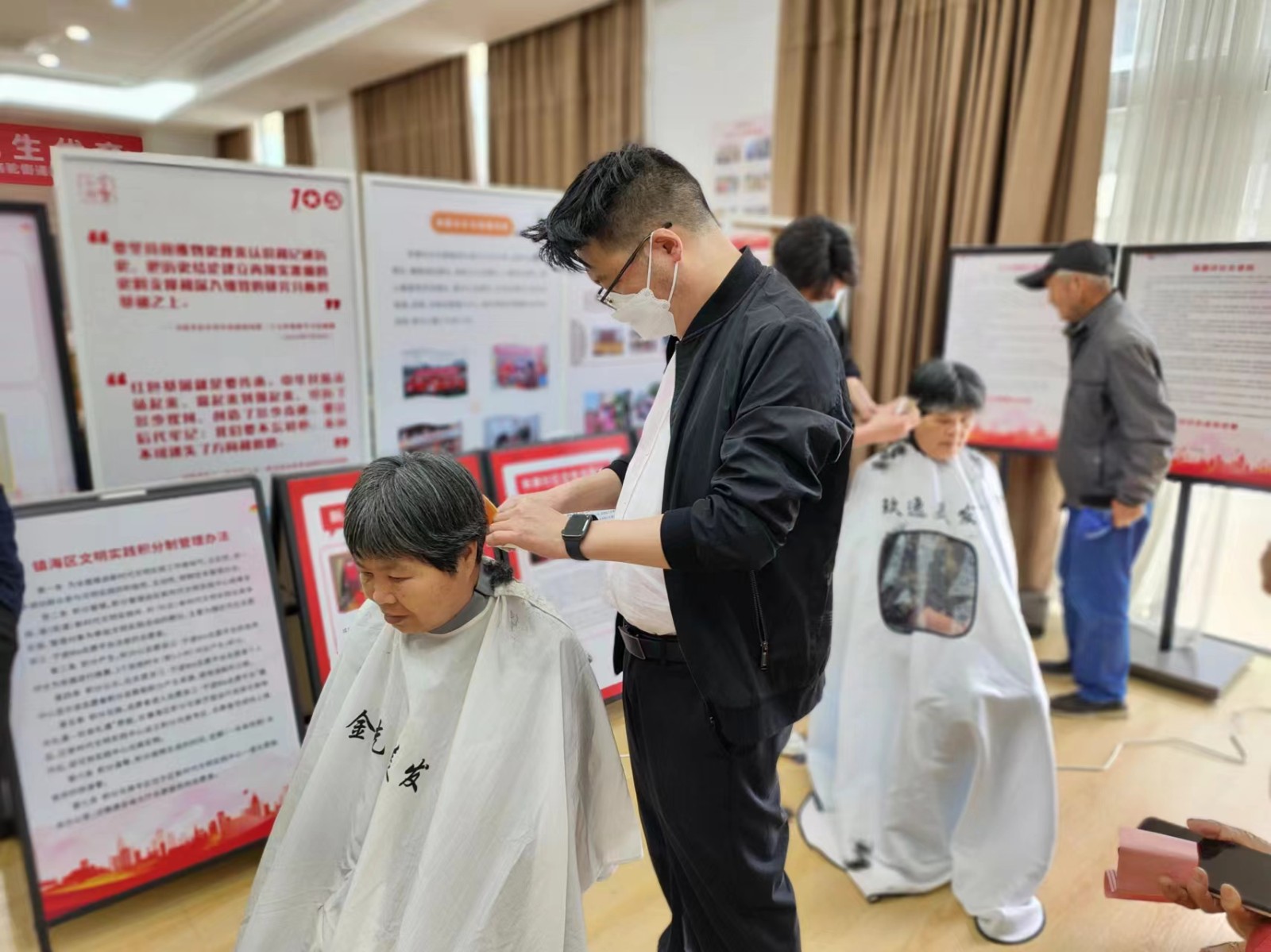 微信图片_20240425093736.jpg      次活动主要为辖区内居民免费提供理发、磨刀、修伞、手机贴膜、健康咨询、政策宣传等多项便民服务。活动现场气氛活跃,居民们络绎不绝,大家根据自己的需求穿梭于各摊位。简单的工具,细致的服务、精湛的手艺,让社区居民享受到的不仅仅是免费服务,更多的是来自社区的关怀。
