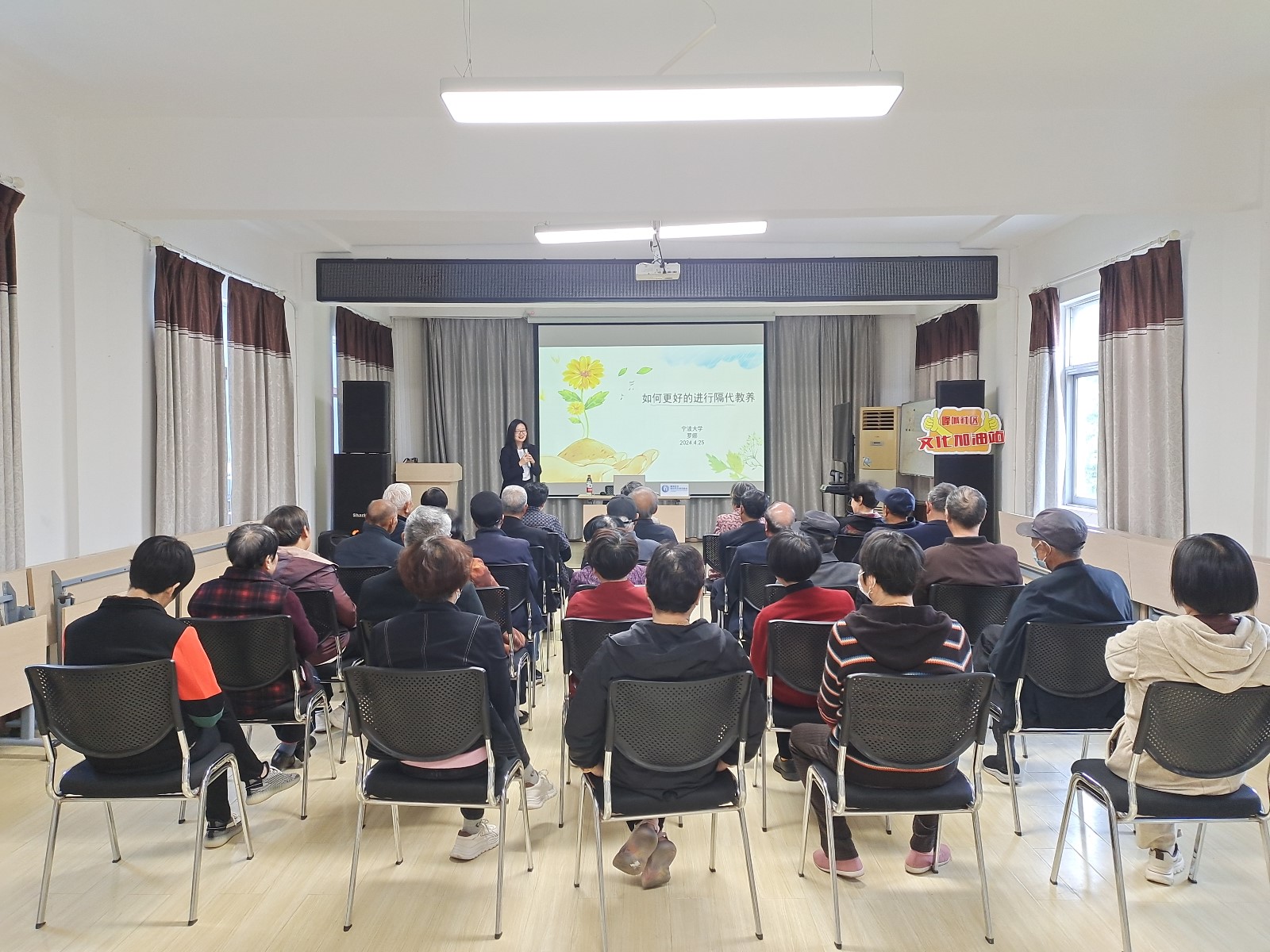 为了营造良好的家庭氛围,更好地促进家庭内祖辈与孙辈之间进行隔代沟通,提升爷爷奶奶、外公外婆们的教育观念。4月25日下午,峰城社区党群服务中心联合社区妇联、社区新时代文明实践站,邀请宁波大学隔代教育研究专家罗娜博士开展“隔代教育 助力成长”为主题的家庭教育知识讲座,辖区近40名老年朋友参加。