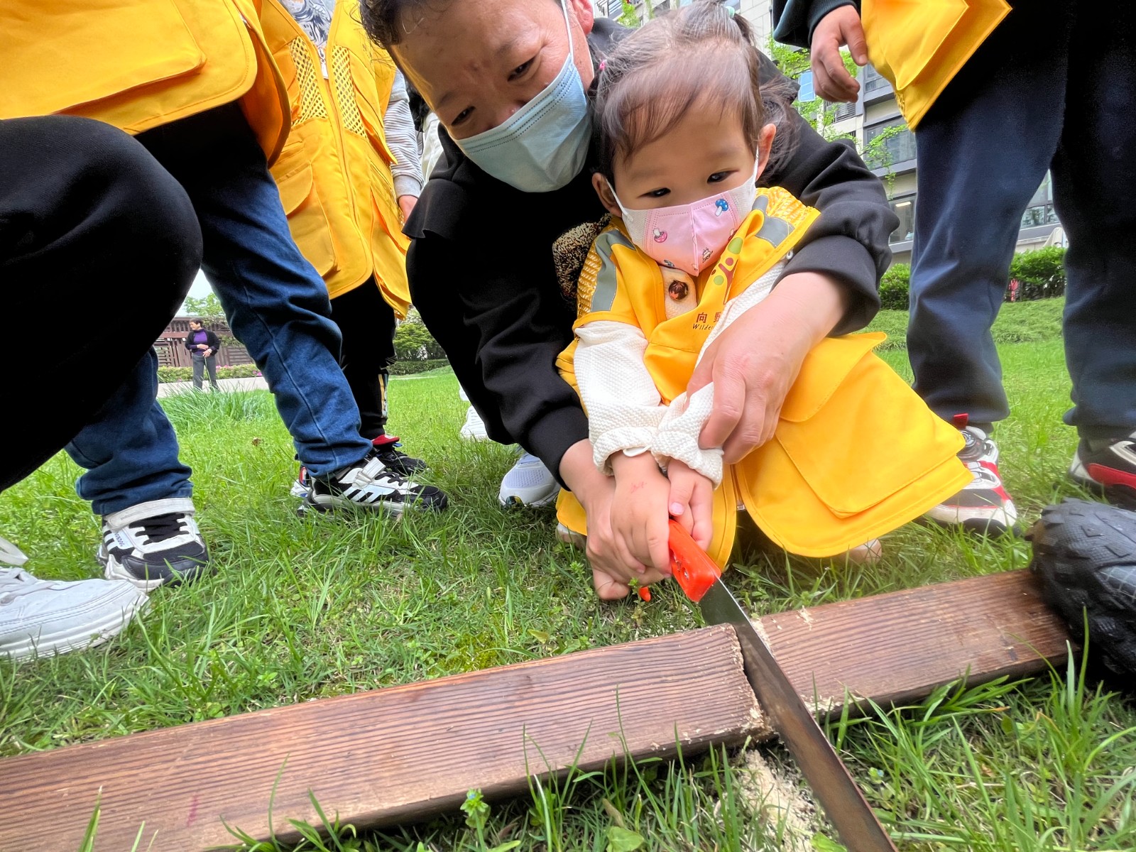 课程开始前,网格员用小游戏破冰,让小朋友相互熟悉,热场后“向野未来”志愿队领头人金标为大家讲解厚土种植与种植箱的知识,小朋友们人手一块木板已经迫不及待、跃跃欲试了。金标讲解完,小朋友就开始了种植箱制作,测量、锯木、拼接,大家铆足了劲向着目标努力,或亲自测量或亲子共同锯木经过一小时的共同努力,种植箱做好了,亲自动手让他们收货新的体验,感受身边的自然科学!