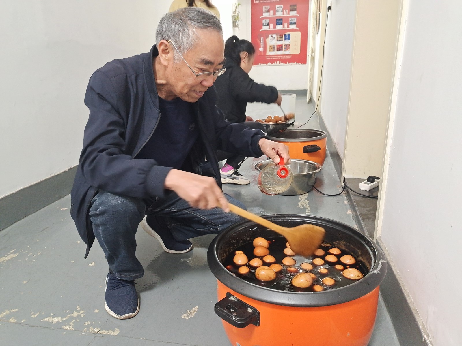 活动现场,网格员将采购新鲜鸡蛋洗干净冷水下锅,煮五六分钟后捞出冷却,用刀背把蛋壳均匀拍碎后放入锅中,再在锅里加入适量的八角、香叶等材料,煮上半小时后,放入茶叶包,加入少许老抽中和味道,淡淡的茶叶香味扑鼻而来。网格员及微网格长们迅速分装打包,送到辖区高龄、独居老人家中,赶在饭点前为老人们“暖心加餐”。吃到香喷喷的茶叶蛋,老人们非常开心,不断感谢着社区的关怀和惦记。