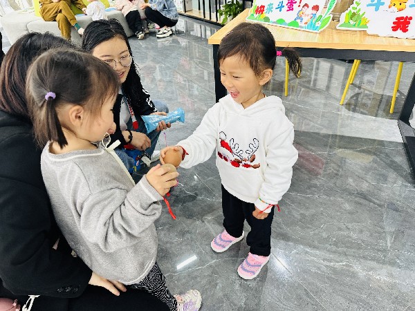 活动中,孩子们积极参与了立夏称重、编织蛋套、趣味斗蛋等各种环节。立夏称重环节让孩子们亲身感受了传统节气的习俗,让他们了解到立夏的重要意义;编织蛋套环节则让孩子们动手体验了传统手工艺,感受到了传统文化的魅力;而趣味斗蛋环节则让孩子们在欢声笑语中体验了传统游戏的乐趣,拉近了彼此之间的距离。活动现场充满了欢声笑语,孩子们玩得不亦乐乎。家长们也纷纷表示,通过这样的活动,孩子们不仅可以学到更多的传统文化知识,还能够在游戏中培养团队合作意识和互助精神。