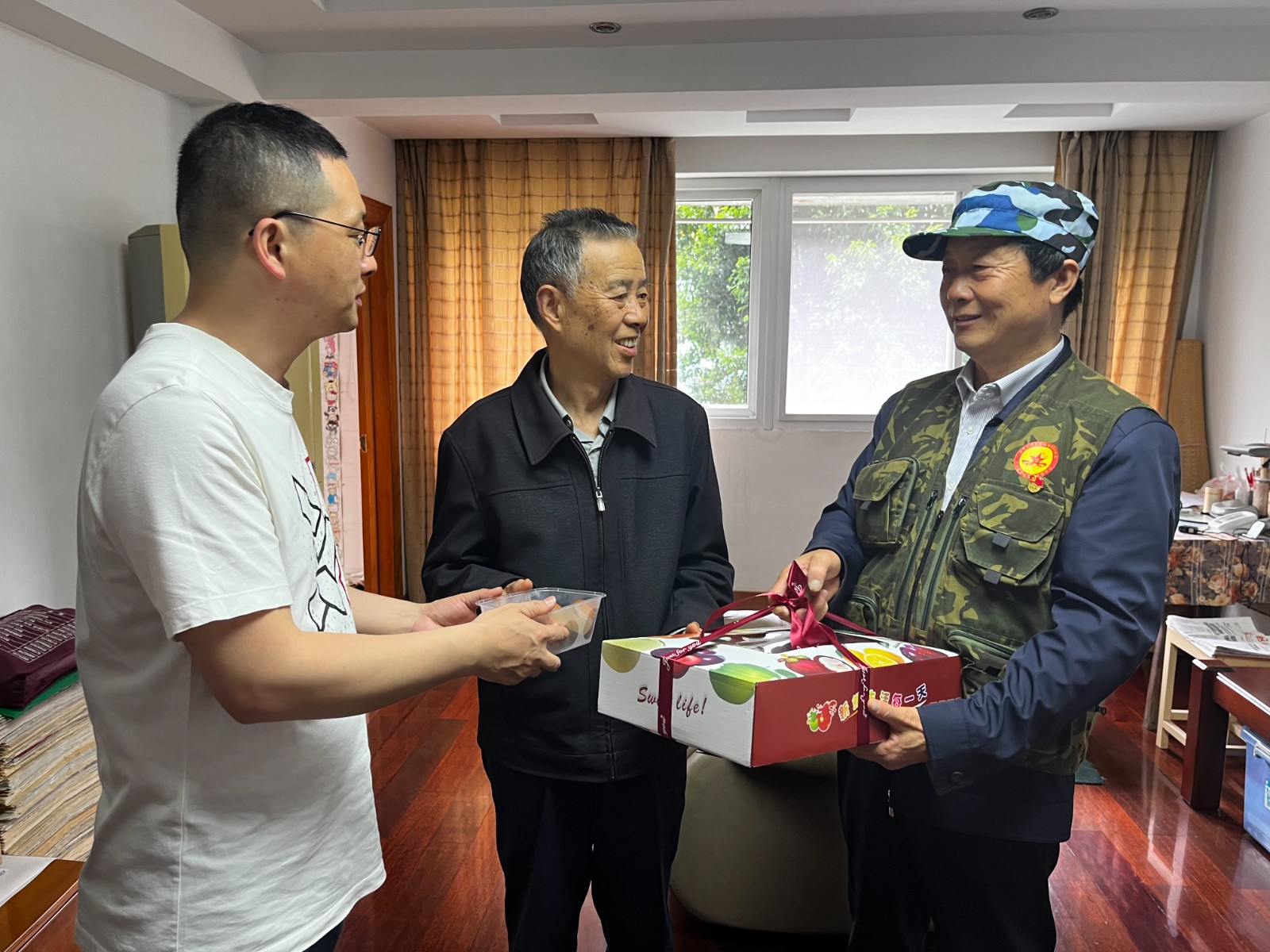 随着“拼蛋”环节的圆满结束,社区副主任俞崇良与退伍老兵代表一同前往百岁老人家中进行慰问。他们带着满载着祝福的鸡蛋,为老人们送上了节日的问候和关怀。在老人家中,大家围坐一堂,共话家常,分享着立夏的喜悦与温情。