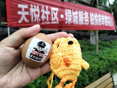 活动当天正是立夏节,而在宁波过立夏总是少不了拄蛋游戏。此次天悦社区网格志愿者们别出心裁,给立夏蛋贴上“网贷有风险”“反诈电话96110”“警惕新型电信诈骗”等防范电信网络诈骗宣传标语,加上生动形象的配图,让人眼前一亮。