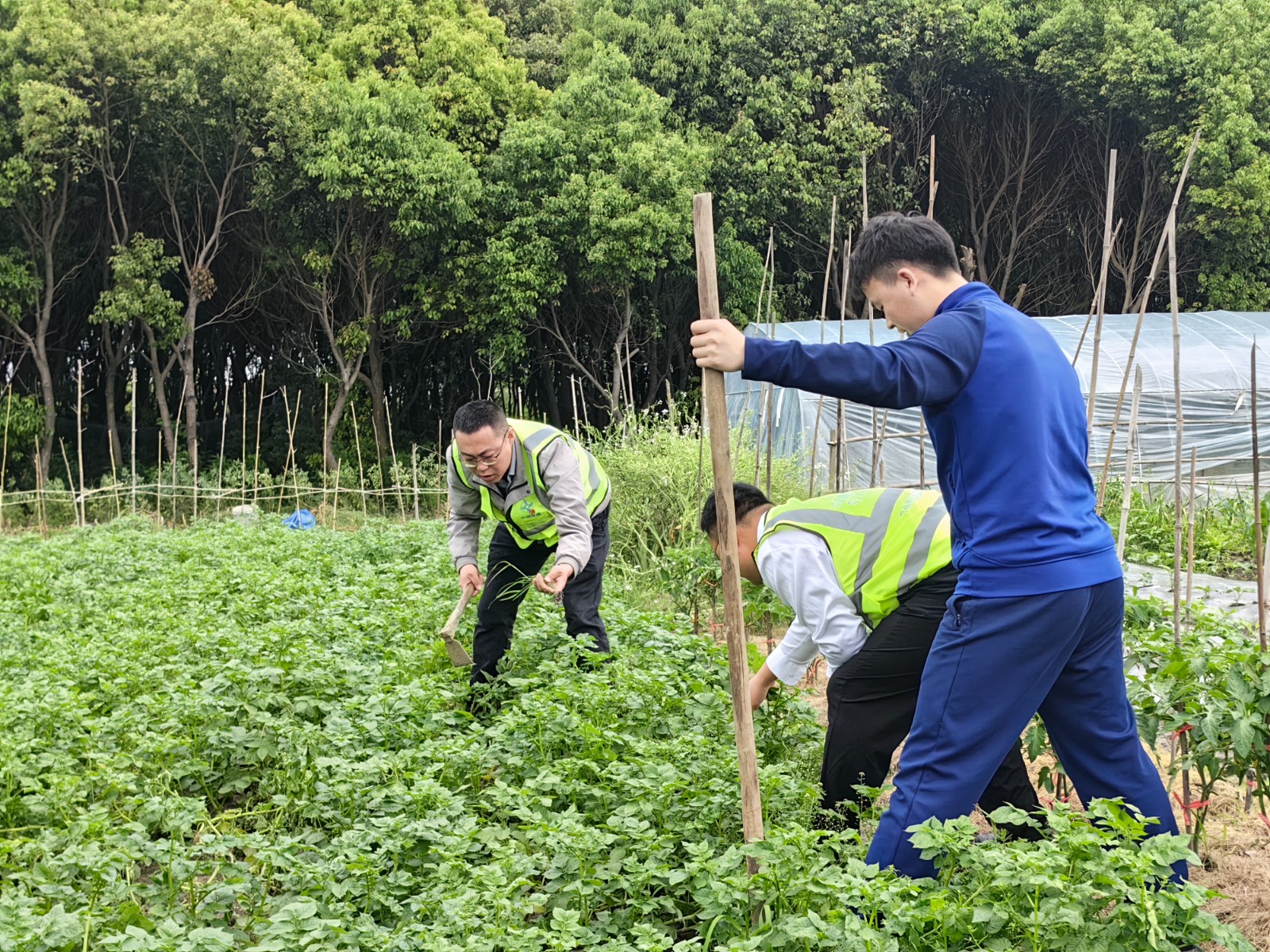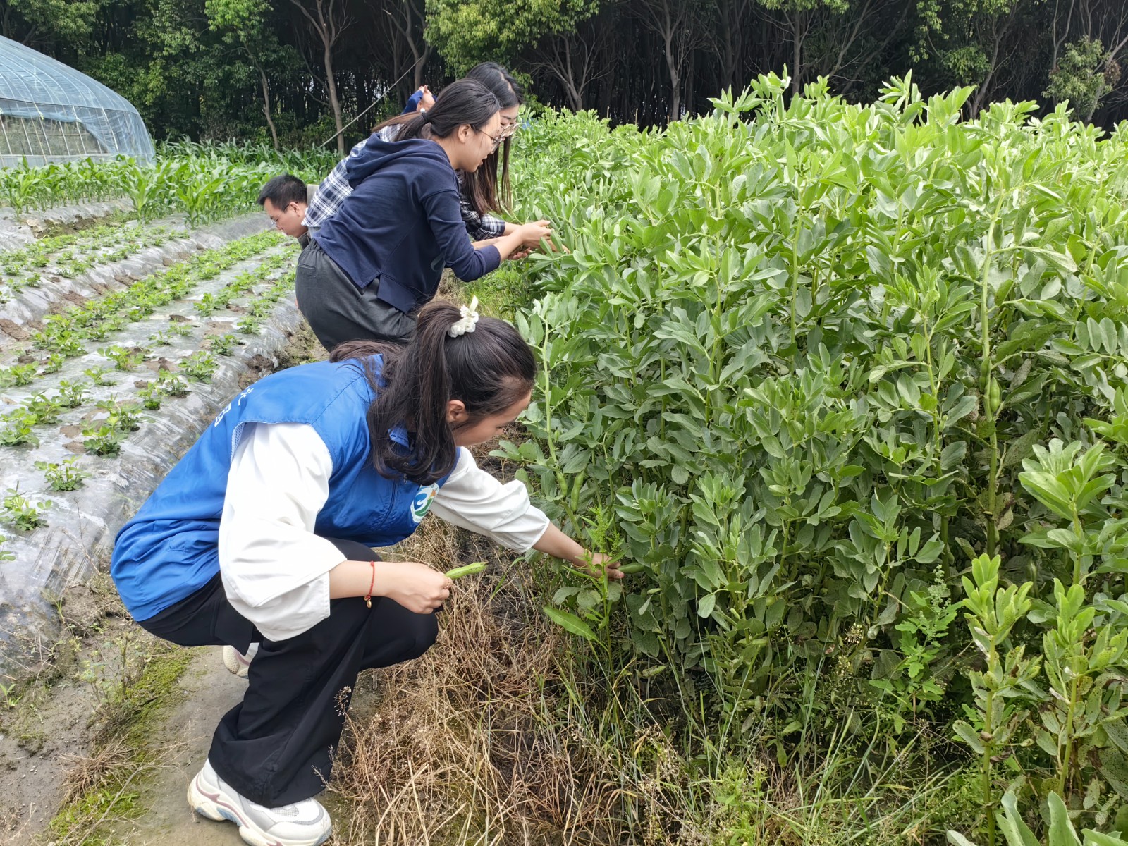 活动中,青年们扛起锄头、走入田间,晚期休息,弯下腰,在老师们的指导和示范下,有的进行除草劳作,有的采摘成熟的蚕豆。许多人都是第一次下地,一边学习、一边劳动,沉浸其中,不亦乐乎。在劳动中,大家不仅体验到了收获农作物的乐趣,也体会到了在田间劳动的辛苦、粮食的来之不易。
