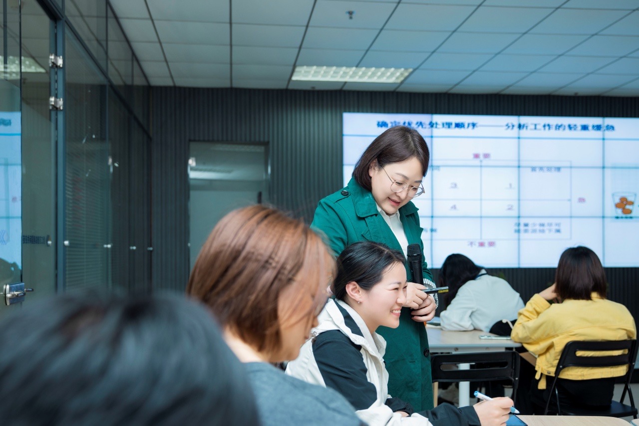 培训中,主讲老师首先系统地解了有效时间管理的含义、本质、好处以及障碍,时间管理的要诀与步骤然后,又用工作案例阐述了时间管理必然以“具体事务”为依托,以帮助个人和组织优化工作流程、减少时间浪费、提高生产效率等为目的,方能论及其有效性。老师还强调:通过制定明确的目标和计划,可以更好地完成自己的工作,避免盲目和无效的努力,同时,优先级分配、任务分解、时间块划分等技巧,也可以帮助大家更好地管理时间和任务,提高工作效率;此外,建立良好的时间管理习惯,通过具体事务的磨炼,逐渐养成个人按时完成任务、不拖延、不浪费时间的优良品质,以及更加专注于重要和紧急的任务,避免被琐碎的事务所干扰;并且通过优化工作流程、减少不必要的会议和沟通、利用碎片时间等方式,进一步拉升效率,让工作呈现更好的成果。