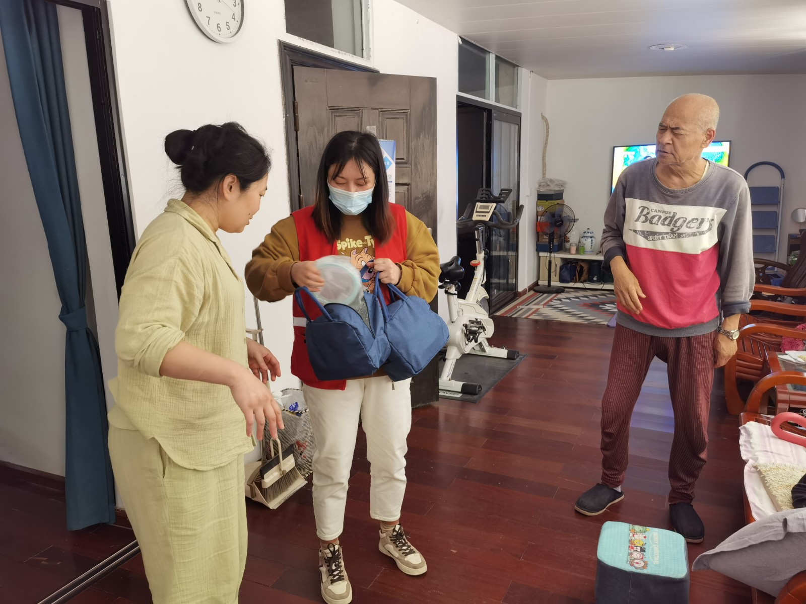 5月8日下午,社区网格员赵微对辖区内残疾人进行入户走访慰问,将实用的生活用品送到居民手中,亲切地了解询问他们最近的身体状况、生活情况以及遇到的困难。同时,针对有需要的居民,网格员联系龙赛医院慈善义工队上门为残疾人进行日常检查和康复训练,开展健康知识普及行动。其中,肖师傅因肢体残疾,长期卧病在床,张医生细心地帮助肖师傅进行翻身检查和腿部按摩揉搓,并鼓励他在日常生活中要多进行一些力所能及的自主活动,叮嘱照护者和家属也要对肖师傅多翻身和进行一些被动运动训练,防止发生压疮和废用性萎缩,使老人尽可能恢复一定的自我生活能力,增强自信心。“真是太好了,我去医院也不方便,现在医生上门给我做检查和康复,真是太感谢啦。”赵微亲切地鼓励肖师傅和其家人,虽然生活中有诸多不便,但我们始终要保持乐观的心态,积极面对生活。
