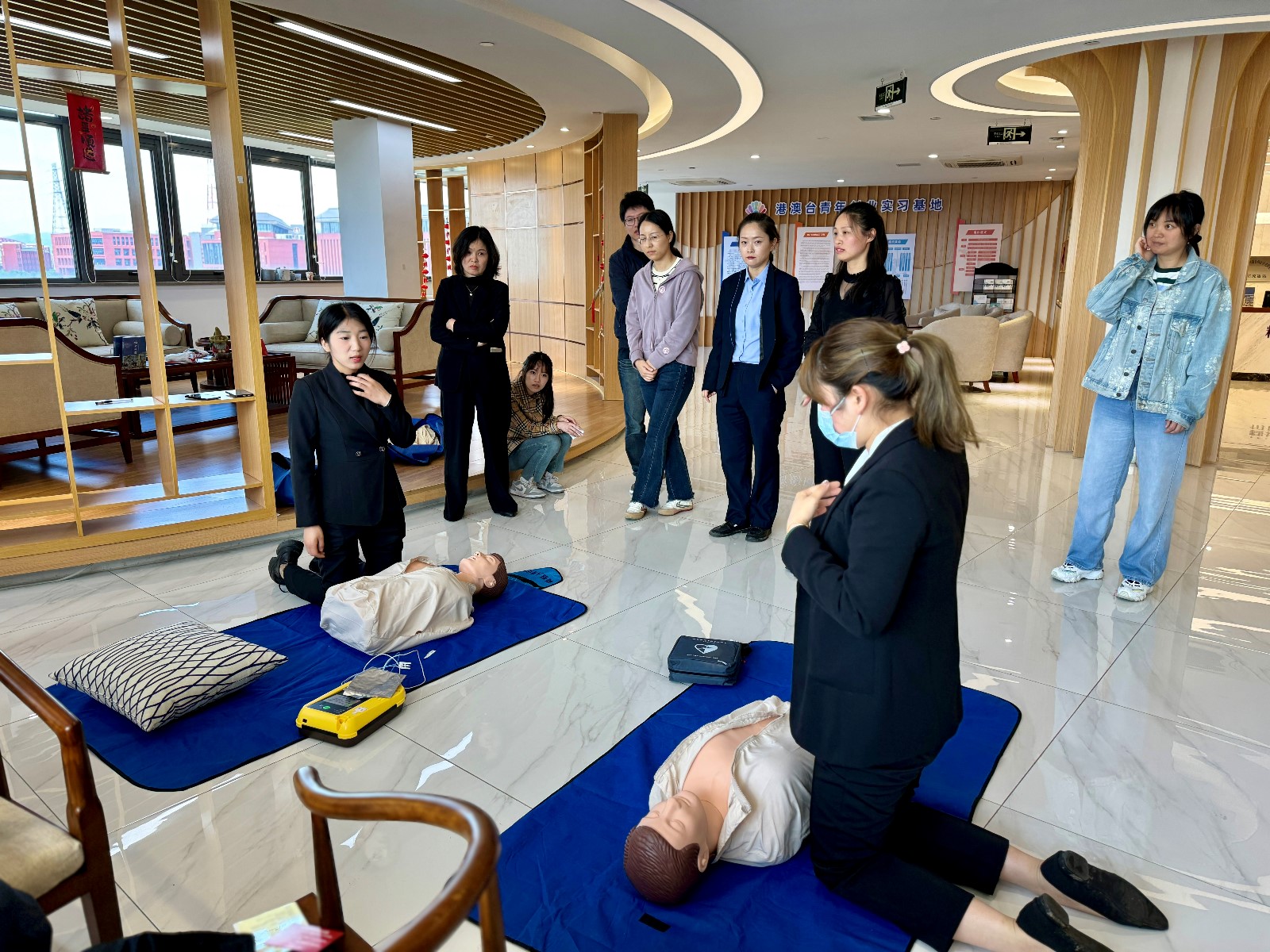 “老师让我来试试!”“你这只手的位置可以再往上一点,节奏可以再慢一些。”“按压时着力点不要放在手指,而是用掌根发力。”在现场实操环节,王老师手把手指点学员,纠正学员的手势与体位,学员们分组轮流进行练习,切实提升实际操作能力,现场气氛热烈积极。“第一次参加这么专业的应急救护培训,收获很大,以后进行急救处理时,心里更有底气了。”来自北航宁波创新研究院的小乐说道。