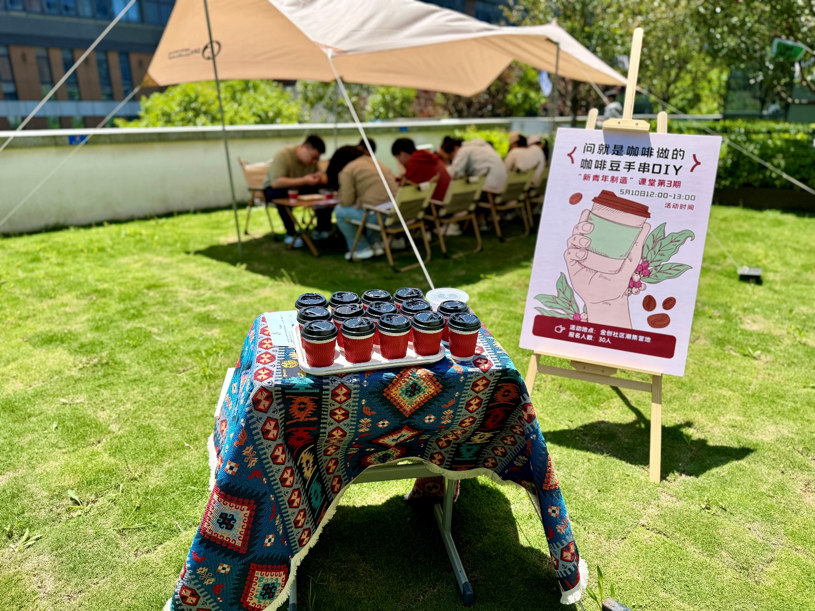 “没想到,一颗小小的咖啡豆也能成为一件艺术品!”5月10日,梅山成校教学点金创社区“新青年制造”课堂第3期--“问就是咖啡做的-咖啡豆手串DIY”活动欢乐开课,新颖的主题一下子就吸引了宁波诚胜生态建设有限公司、浙江中通文博服务有限公司、北大宁波海洋药物研究院等10余家企事业单位的青年人才争相报名。”中午时分,伴随户外的暖风和咖啡的香气,40余名年青人齐聚金创工业社区潮集营地,在别具特色的手工制作中创造快乐、感受美好。