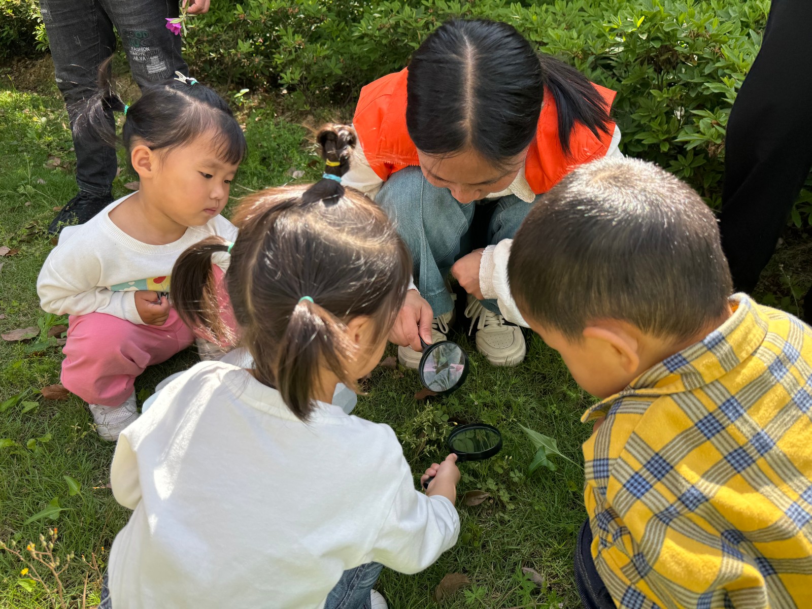 “蝴蝶蝴蝶生得真美丽,头戴着金丝,身穿花花衣,你爱花儿花也爱你……”在轻快的歌声中,领尚幼儿园的潘静静老师带着孩子们走进大自然的怀抱,大家席地而坐、闻花香、听鸟语。“这有颗小豆荚。”“树上结果子啦!”“快看,那有只蝴蝶!”……在潘老师的引导下,孩子们手持放大镜,一个个都睁大好奇的眼睛仔细观察着四周,探寻大自然的秘密。