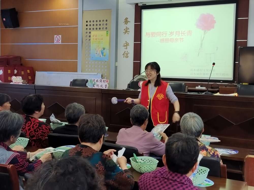 母亲节来临之际,清水浦村妇联邀请本村部分老年妇女同胞,在文化礼堂上了一堂关于艾草锤制作的讲座。