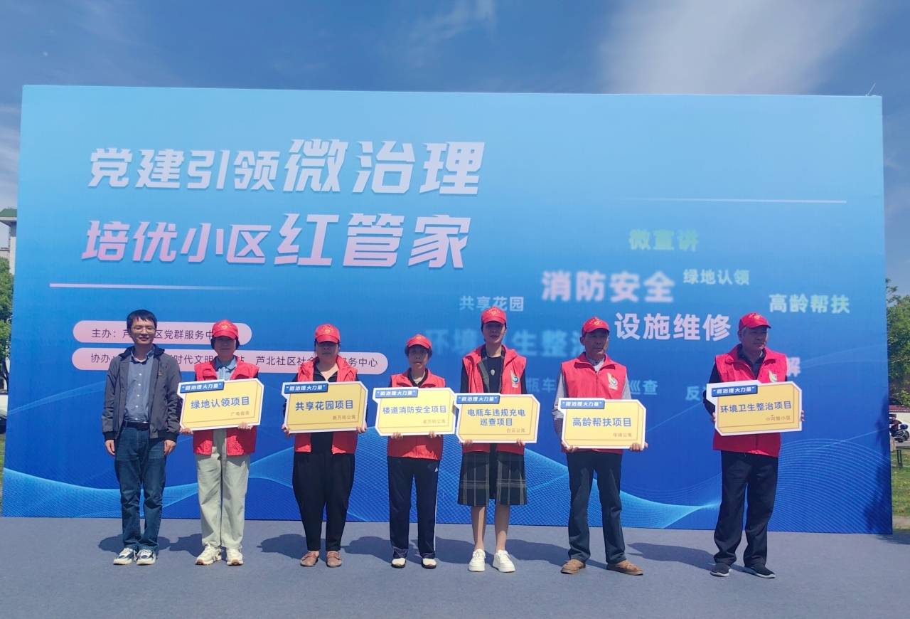 经过多年来老小区自治经验的积累,芦北社区聚焦民之所想、民之所盼,提出“微治理大力量”系列之高龄老人帮扶、楼道消防安全、共享花园、绿地认领、电瓶车违规充电巡查、环境卫生整治6个“微治理”认领项目。在各小区“红管家”的带领下,将项目落地落实,形成党员带头、居民参与的强大合力,充分调动居民的主人翁意识,激活“最小单位”幸福细胞。