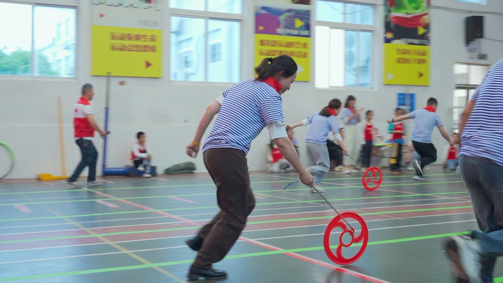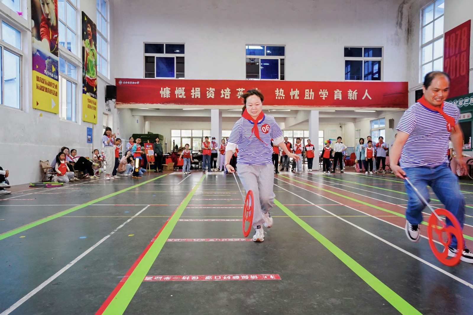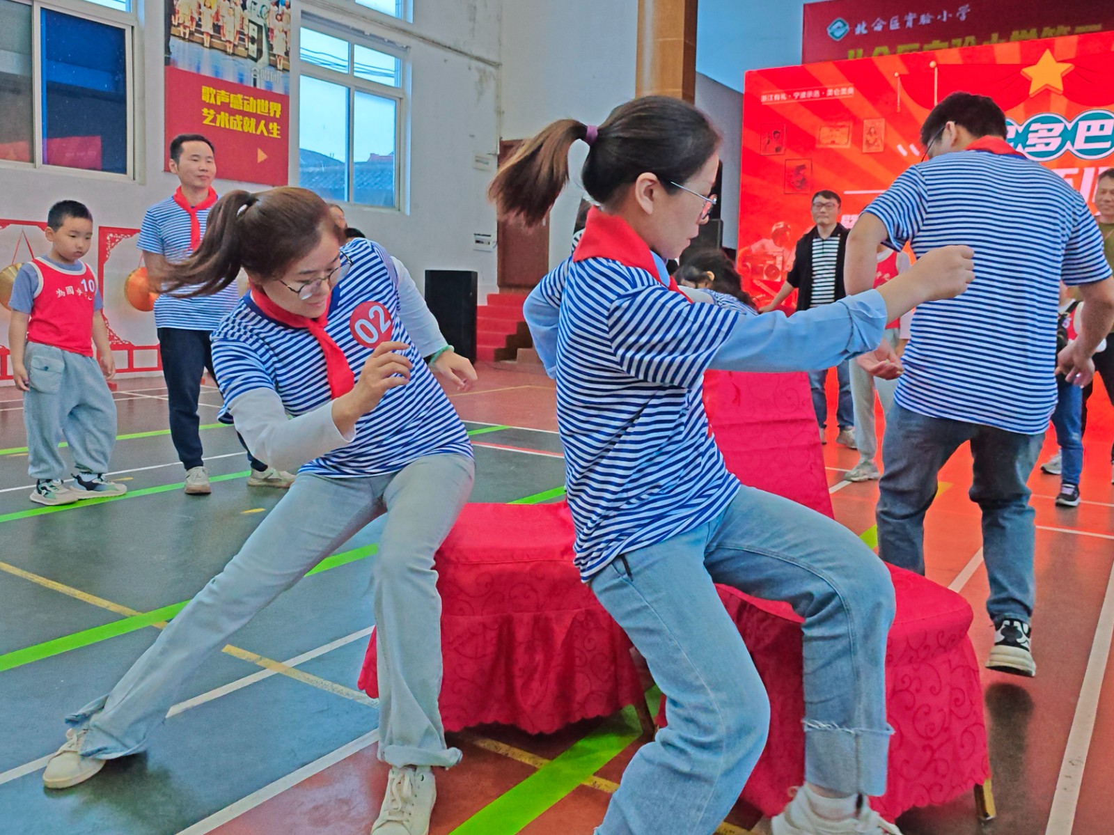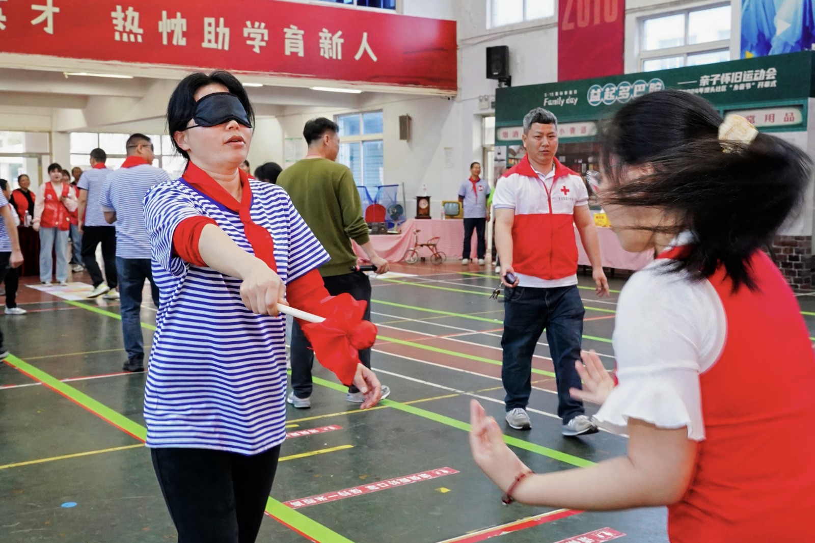 “蒙眼向前敲大锣”“抢先一步坐下来”等趣味亲子游戏让各组参赛家庭在享受欢乐的过程中还提升亲子间的默契程度。“没想到我和女儿之间可以配合得如此默契,这要是放在以前真不敢想象。”在蒙眼敲锣比赛现场,二年级的宝妈杨海娜成功抵达终点敲响大锣,摘下眼罩的她和女儿热情相拥。