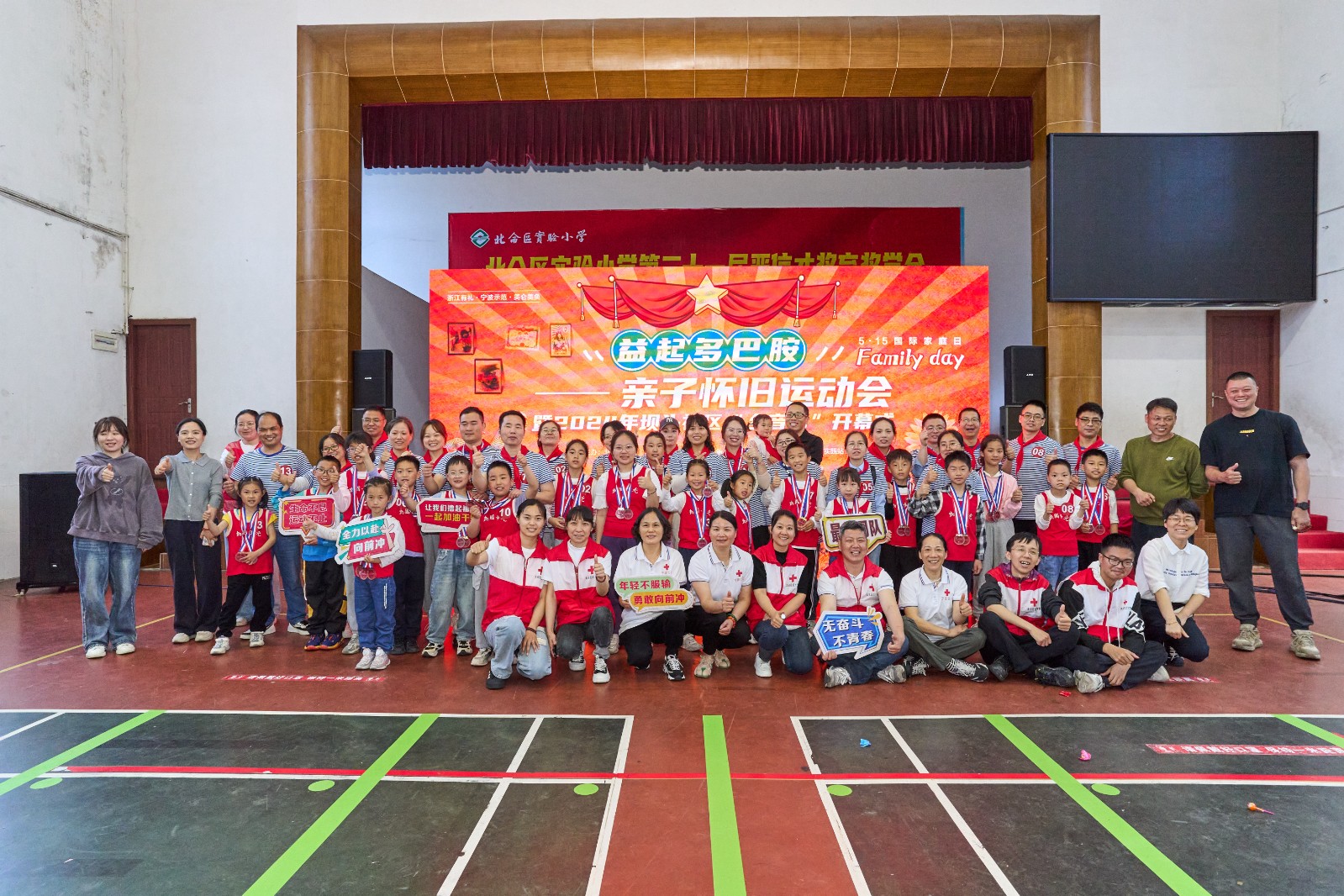 传承好家风,相亲又相爱。在第30个国际家庭日来临之际,5月12日上午,一场有趣又好玩的“Family day益起多巴胺”亲子怀旧运动会暨坝头社区乡音节开幕式活动在北仑区实验小学火热开场。在这里,增进亲子感情不仅只是牵手散步、自拍合影,而是融入进了团队协作往返接力的每个动作之中。单脚跳房子、蒙眼转圈敲锣、滚铁环接力、抢凳子......怀旧、经典又好玩的6个亲子接力比赛项目大比拼,让辖区内20余组家庭成员体验了一场幸福加码的“浙风十礼·亲有礼”运动会。