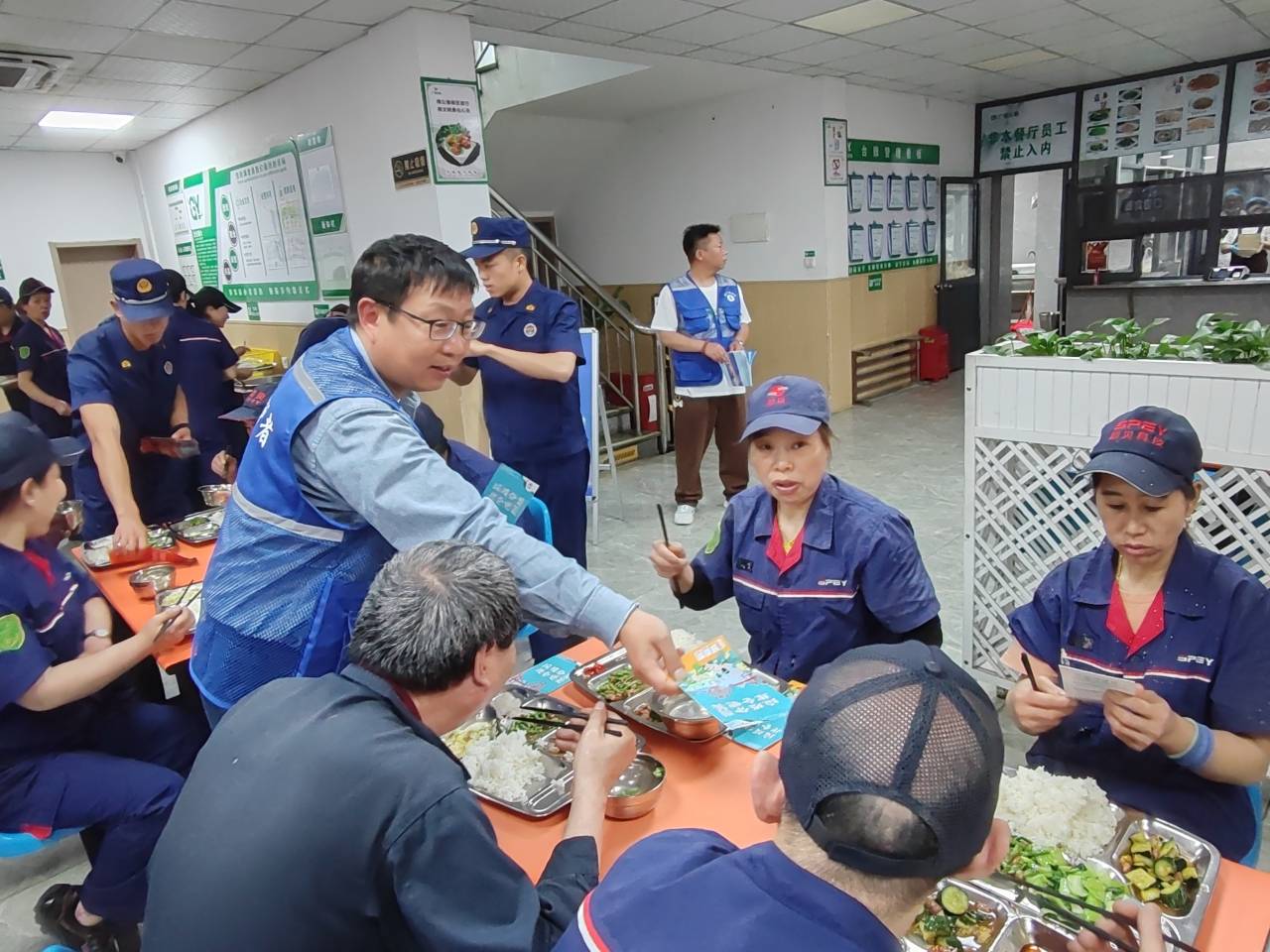 正是职工的午餐时间,社区工作人员和安全守护者联盟成员分成两小组,在斯贝科技的食堂设置了宣传摊位,通过发放传单、科普宣讲、安全知识问答等形式,增强职工的防灾减灾意识,提高他们应对突发事件的能力。面对职工提出的与生产生活密切相关的安全问题,安全守护者联盟的安全生产专家也耐心地一一解答,并通过实际案例讲解了在不同灾害情况下的应对措施和自救互救技能。