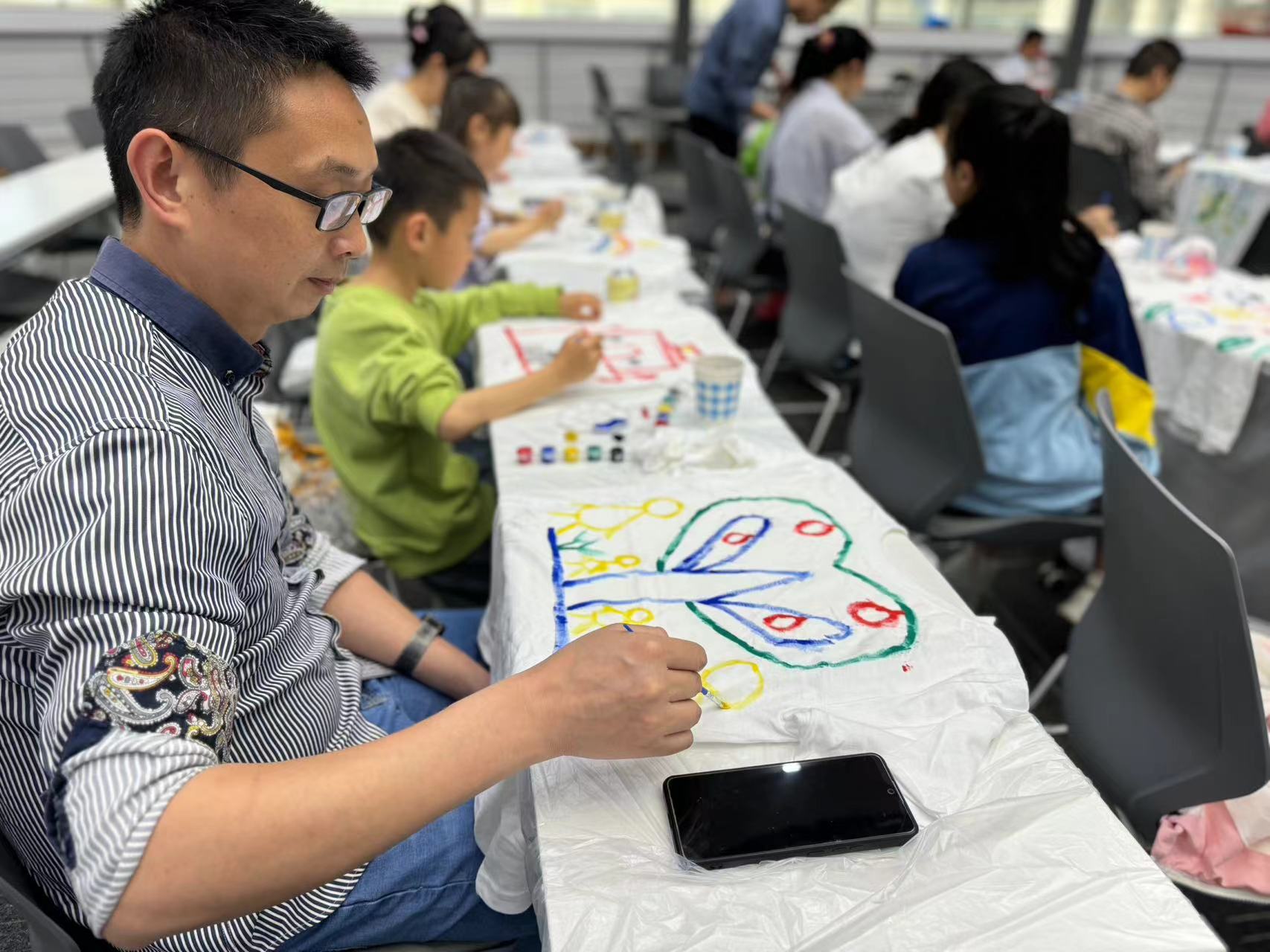 活动现场,网格员将所需绘制的白色T恤以及用到的颜料等材料分发给在场的大朋友、小朋友,并向大家讲解在绘制过程中的一些注意事项。之后,小朋友们与家长一起手绘T恤,挥洒创意,充分发挥自己的奇思妙想,以爱为韵,绘一抹清凉。此外,此次活动也把优良的家风体现在绘画过程中,比如垃圾分类,通过现场引导与指导,有的小朋友通过对垃圾分类标识的绘画,对垃圾分类有了更深的理解,现场小朋友也分享了自己在日常中的垃圾分类行为等。