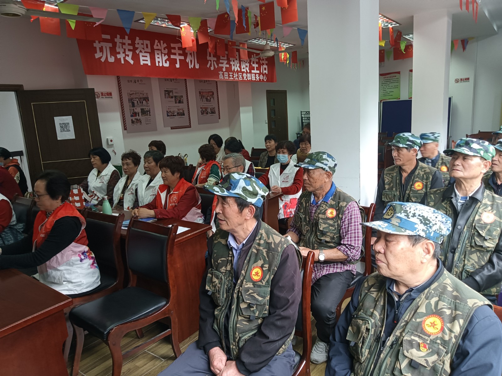 近日,高田王社区组织老年协会志愿者开展“志愿我先行,玩转智能机”志愿服务活动。活动由老年协会志愿者、老兵帮等骨干成员带头学习,帮助社区老年居民更好地操作智能手机,享受科技带来的便利。