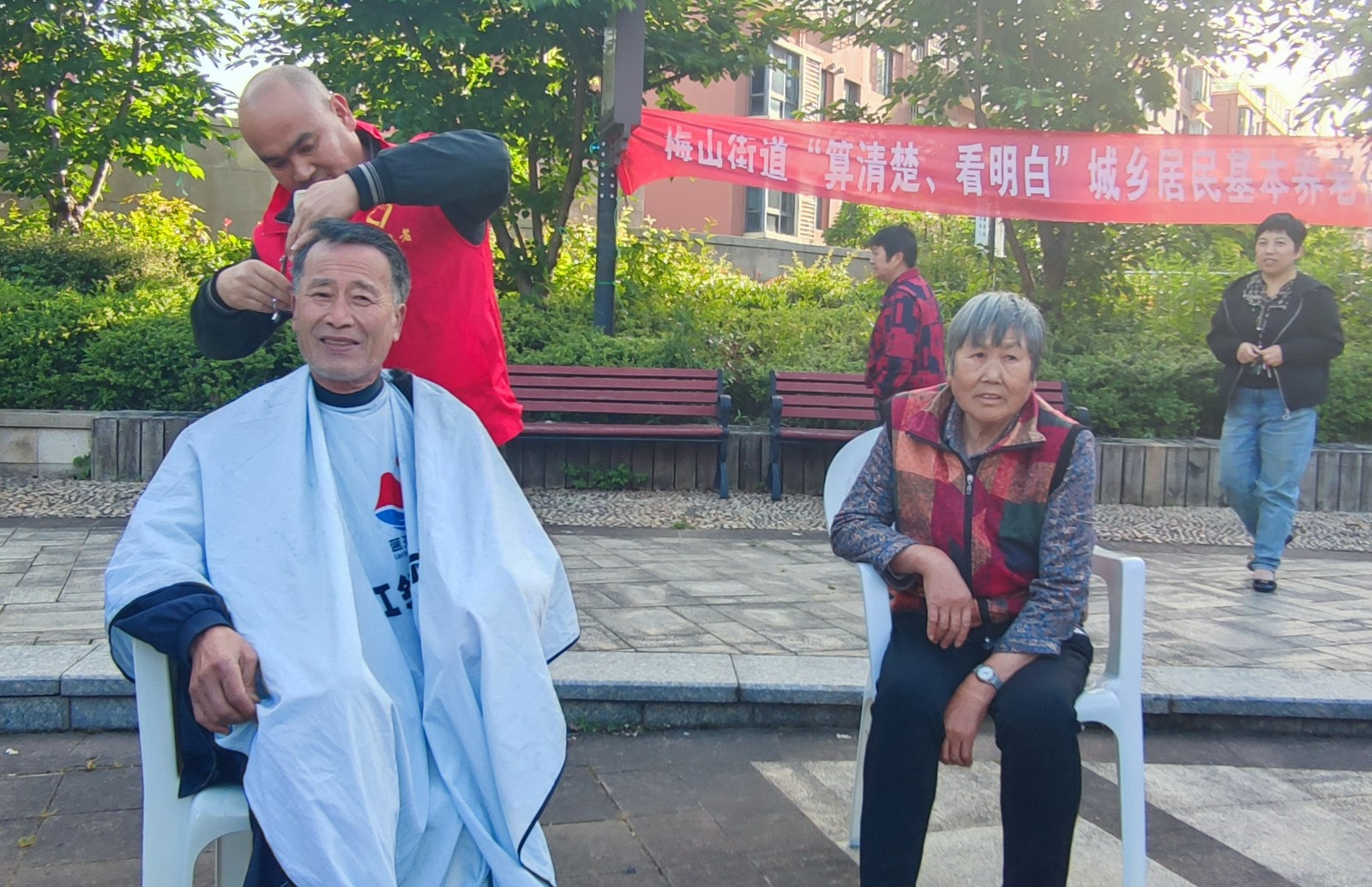 免费理发摊位前坐满了排队的老年居民,志愿者耐心的询问群众对发型的要求,认真地给他们理发,用精湛的技术和热情的服务赢得了群众最忙碌志愿者的美赞。