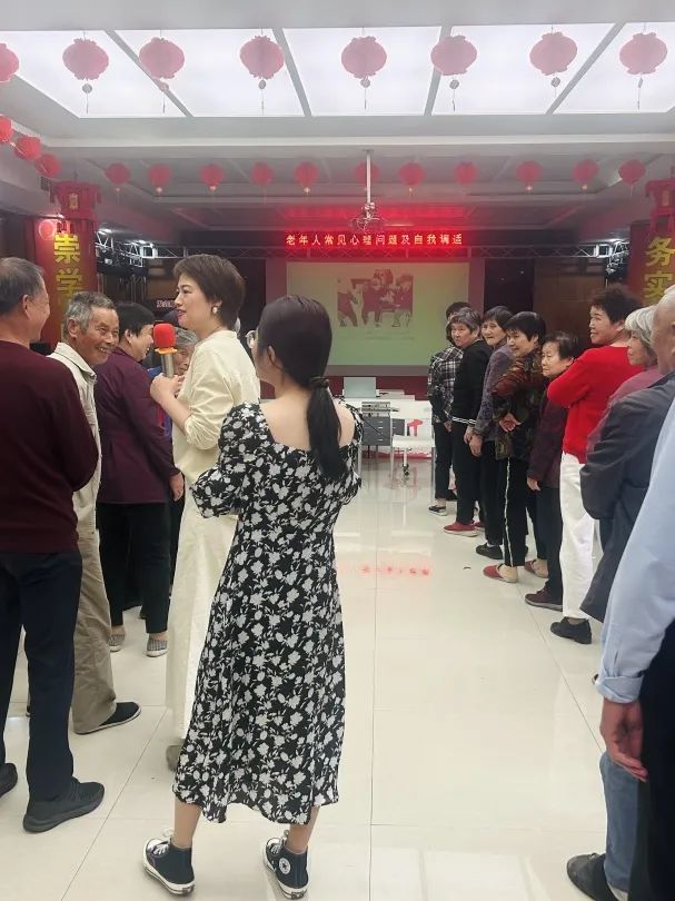 除了心理调适健康讲座,钟燕达和陈倩倩老师还开展了团辅活动。在轻松愉快的氛围中,老年人们通过游戏互动、经验分享等形式,学会了如何有效管理情绪、减轻心理压力。团体辅导不仅增强了老年人的心理韧性,也让他们感受到了集体的温暖和支持。