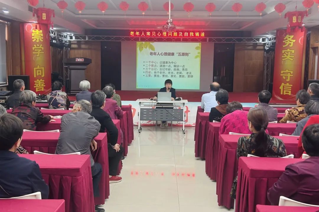 本次心理健康讲座,两位老师围绕老年人常见的心理问题及其成因,辅助简洁明了的PPT,用通俗易懂的语言进行逐步讲解,引导老年人树立乐观向上的生活心态。同时,两位老师还分享了一些有效的心理调适技巧,在场的老年人听得津津有味,频频点头表示赞同。