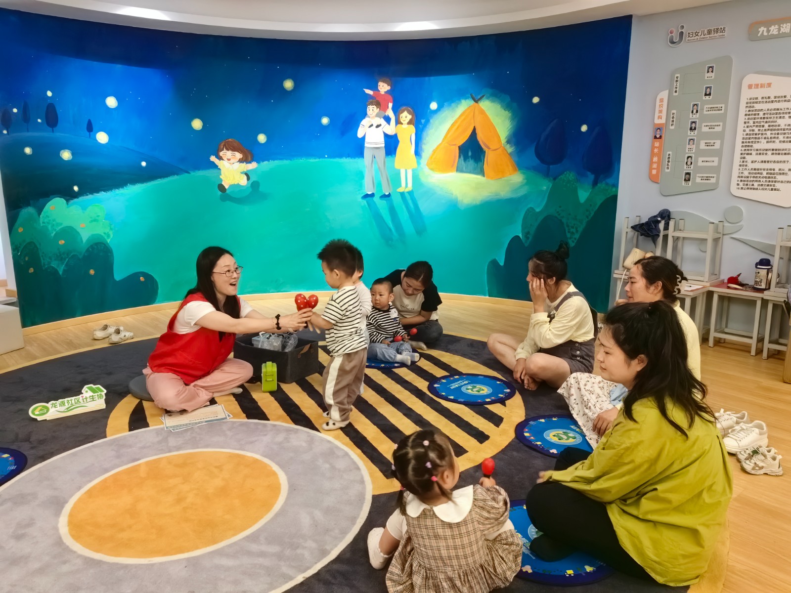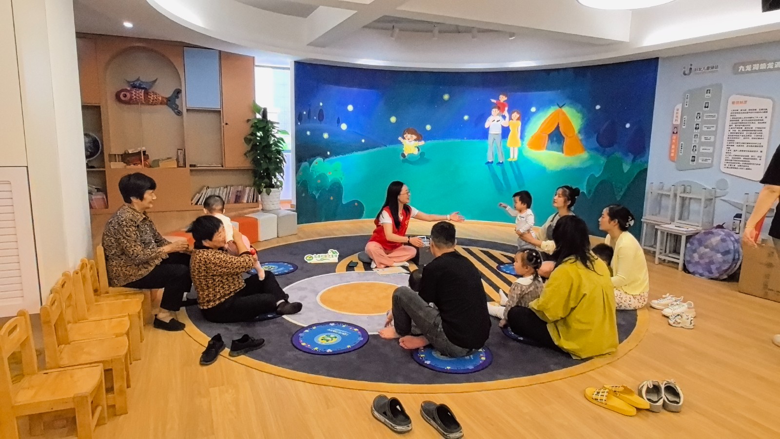 活动开始,刘老师引导每组家庭依次进行自我介绍,为了引导宝宝们熟悉新环境,消除陌生感,提升宝宝们的交往能力,敢于表达、自信地展现自己,大家围坐成一圈,在老师的引导下,宝宝们勇敢地向大家介绍自己。接着老师分发了沙锤,在欢快律动音乐中,小宝宝们挥舞着手中的沙锤,跟着老师一起摇摆。当天正逢5·20世界母乳喂养宣传日,刘老师也为大家科普了母乳喂养及辅食添加的方法和时机等相关知识。