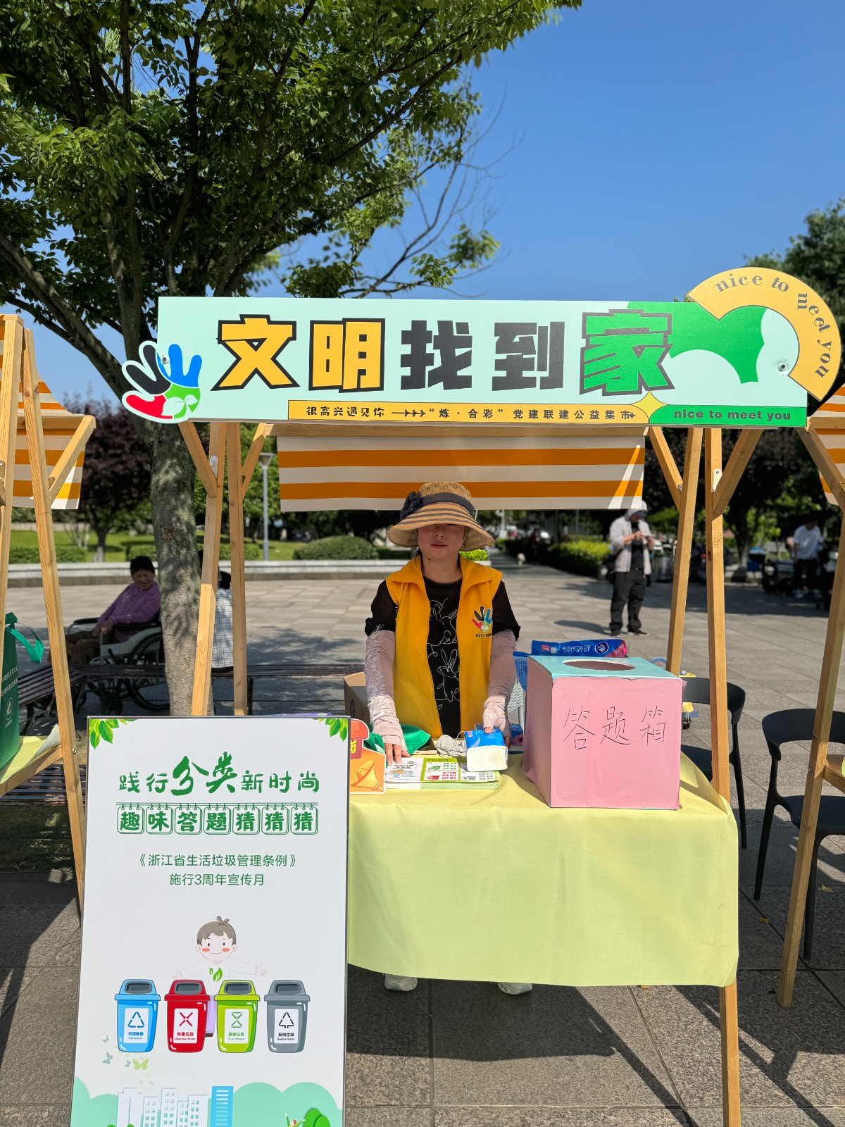 今日上午,石化三建社区联合共建单位共同开展“很高兴遇见你”炼合彩党建联建公益集市,其中垃圾分类新时尚,趣味答题猜猜猜摊位前人头攒动,居民们纷纷抽答题卡回答垃圾分类相关知识,工作人员一边向居民普及垃圾分类知识,宣传垃圾分类相关政策,一边对回答正确的居民给予点赞,发放纪念品,有小朋友表示今天又get到新知识,助力健康镇海建设。