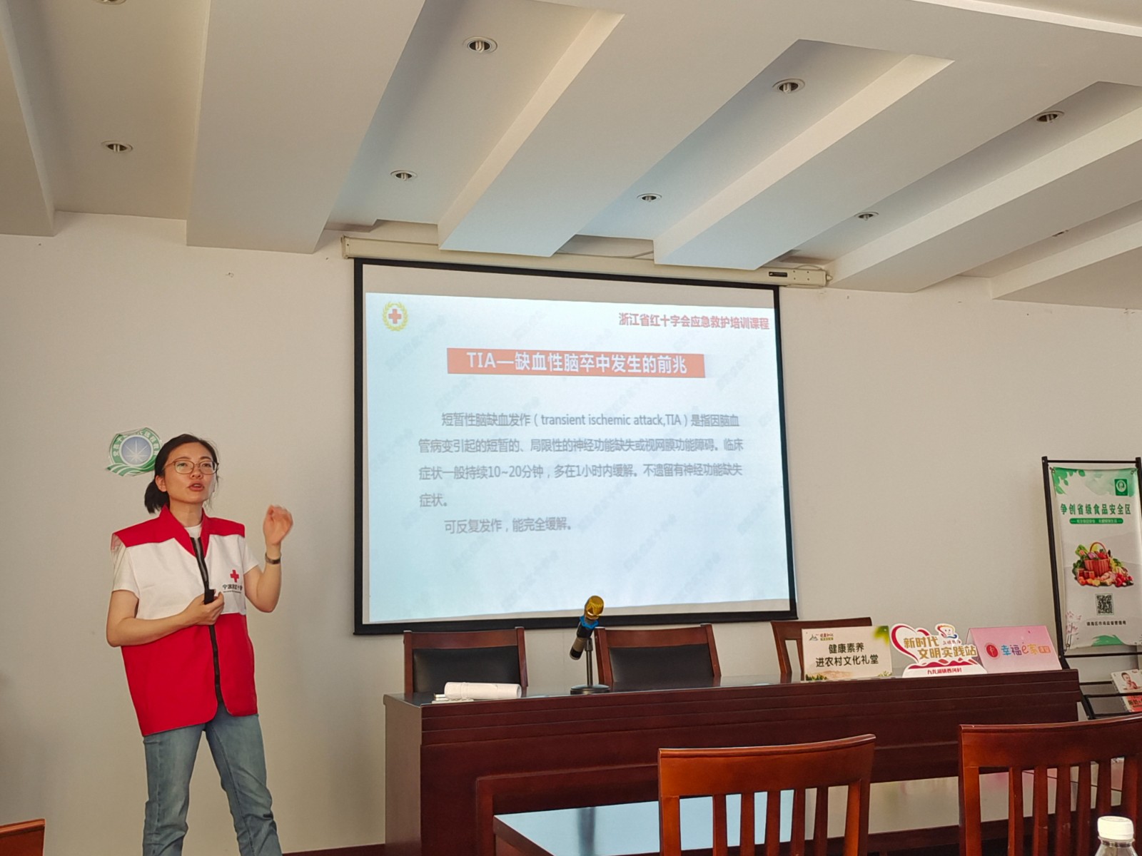 为深入普及卫生救护和疾病防护意识,进一步提高辖区村民对于突发心跳呼吸骤停患者抢救的组织及处理应变能力,5月17日上午, 九龙湖镇西河村开展“爱‘救’在身边”急救知识宣传讲座。培训邀请红十字王蓉老师给村民讲解脑卒中、高血压、糖尿病应急救护知识。