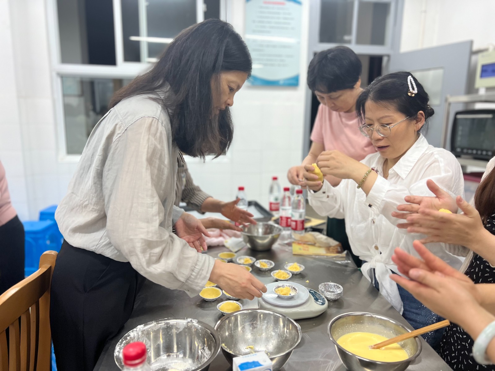 陈老师从烘焙原理、各种材料的特性、烘焙器具的掌握、操作手法的要点、火候的精准计算等方面为学员们进行了详细解说和示范。学员们聚精会神地观摩,并积极参与实践操作,互相交流心得。在老师的指导下,一个个精致美味的“作品”诞生了。活动场地不时传出欢声笑语,大家在学习制作美食的过程中也体会到了自己动手的乐趣。