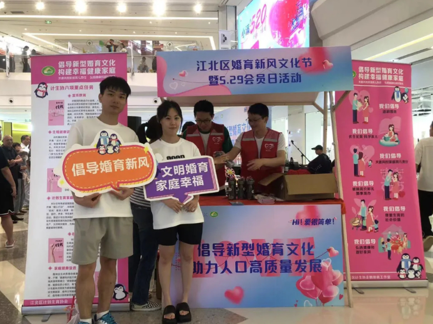 为倡导新型婚育新风,引导群众树立正确的新型婚育观,5月20日,由江北区人口均衡发展领导小组办公室、江北区计生协、前江街道主办的婚育新风文化节在中旅城ifmall开幕,这也意味着前江街道婚育文化系列活动正式开启。当天现场氛围热烈,精彩迭出,有魔术、诗歌朗诵、独唱等群众喜闻乐见的节目,同时还穿插知识有奖问答,将婚育新观念融于节目中,点燃了居民对政策的理解,围观的居民们踊跃参与,积极答题,在欢快的气氛中潜移默化接受婚育新风的熏陶,促进人们婚育观念的转变。
