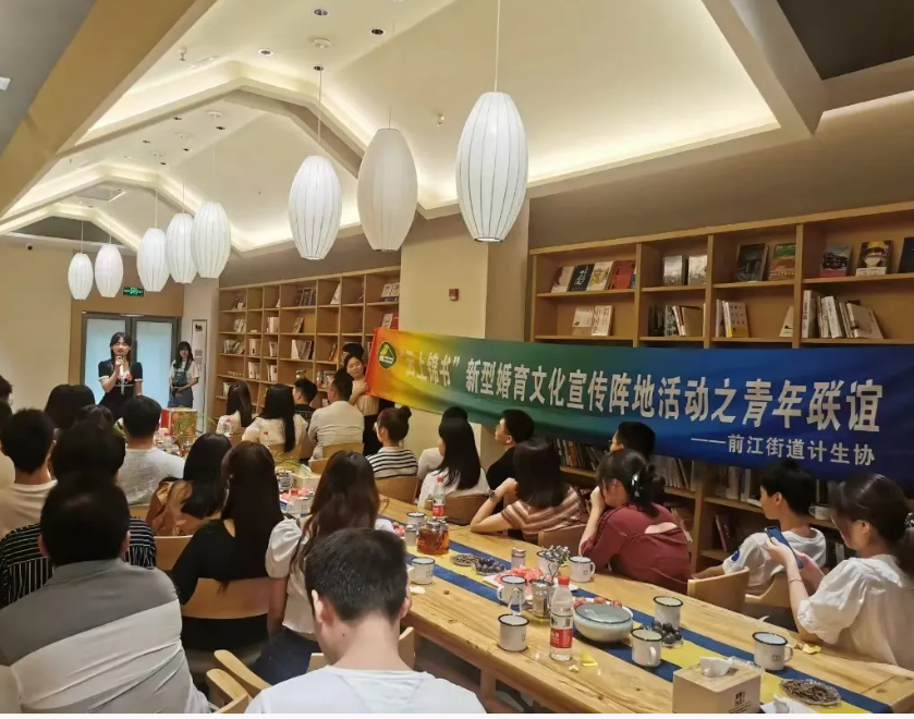 近年来,前江街道以助力建设育儿友好型社会、促进人口长期均衡发展和家庭和谐幸福为主线,依托新型婚育文化阵地,推动婚育新风宣传,不仅成立了全市首个基层人口家庭协会,而且精心打造了未来盛园社区婚育文化长廊,向居民宣传健康文明向上的婚育文化理念,还建设了一支凝聚爱心爸爸力量的企鹅爸爸志愿队,让更多爸爸树立尊重生育的社会价值,夫妻共担育儿责任科学育儿观。同时,街道还在云谷社区打造了国家级子项目云上锦书品牌,围绕婚姻、生育、养育等主题,开展了一系列特色活动。