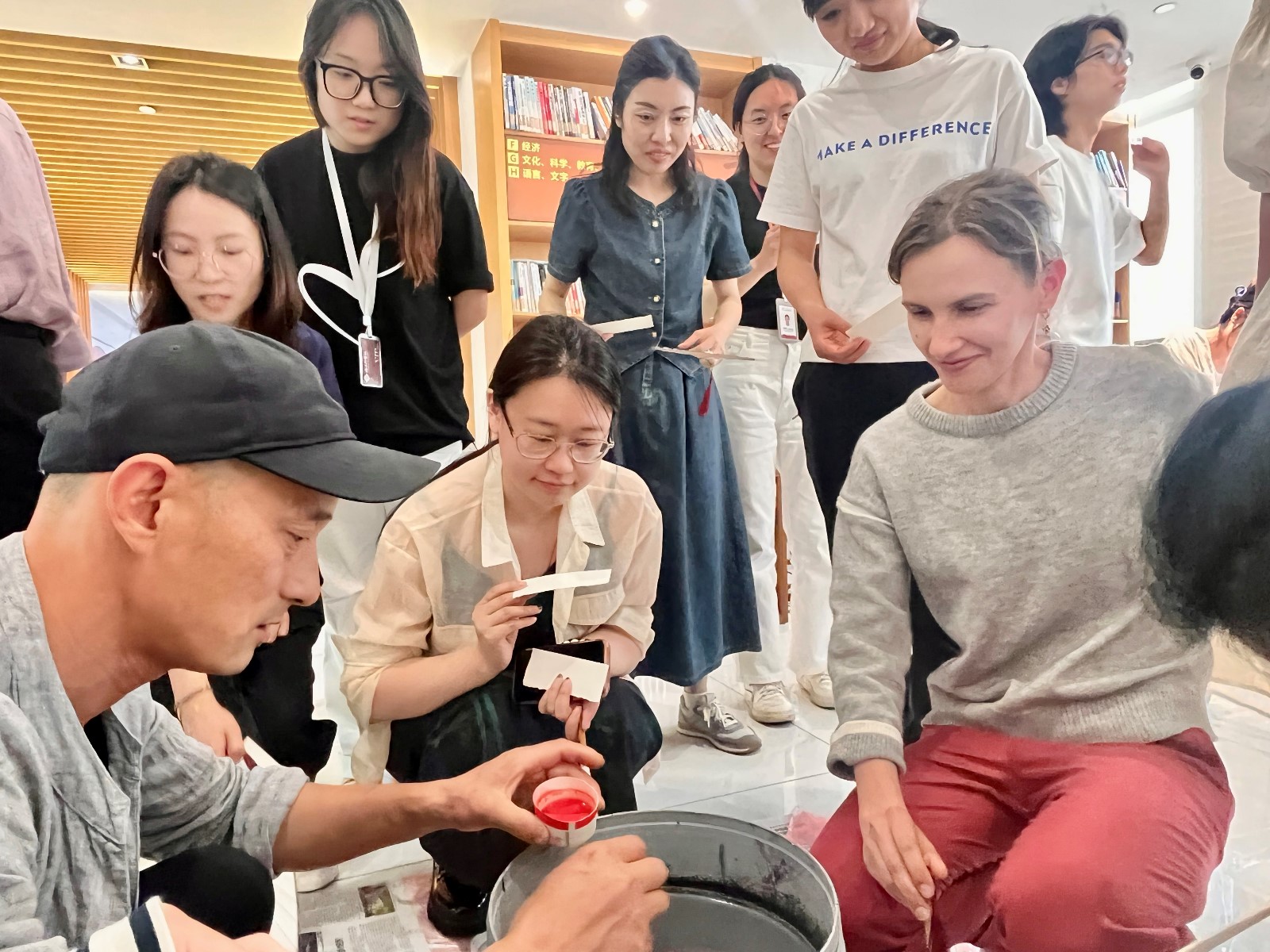 非遗漆扇作为一种独特的文化符号,蕴含着古人的心血和智慧结晶,在这一晕一染间,悠远的历史气息便展现无遗。“如今我们见到的漆扇,不仅保留着历史的沉淀和文化的传承,经过不断研究改进,还融入了时代的特征。”邬老师向大家介绍漆扇的发展历史,“今天我们制作的漆扇与传统漆扇稍有差别,更适合普通人群在日常生活中使用,让一把简简单单的扇子有了穿越时光的能力。”