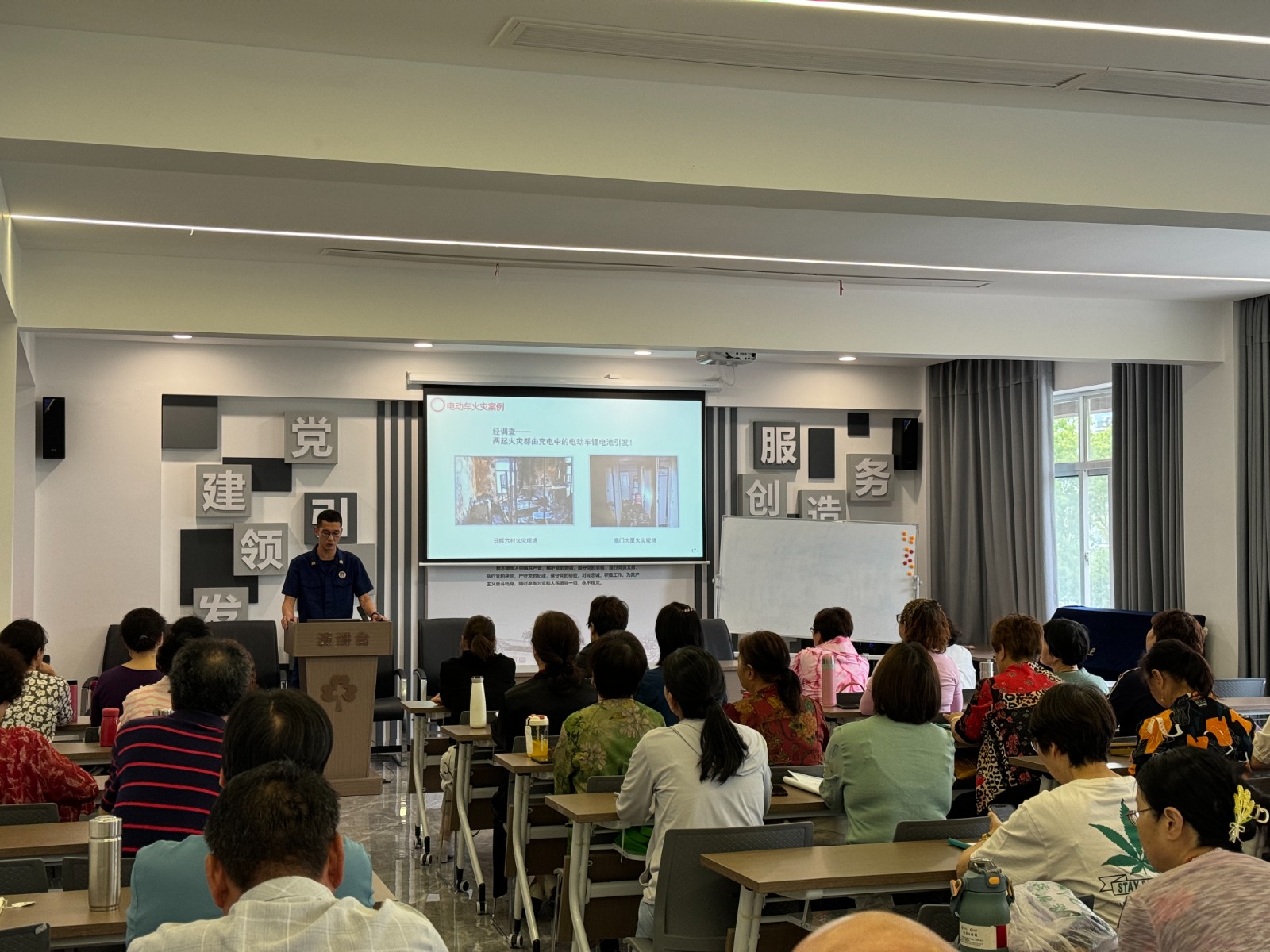 523日下午两点半,江北消防与洪塘街道老年学校携手,共同开展了一场消防演习活动,旨在提高老年学员的消防安全意识和自防自救能力。