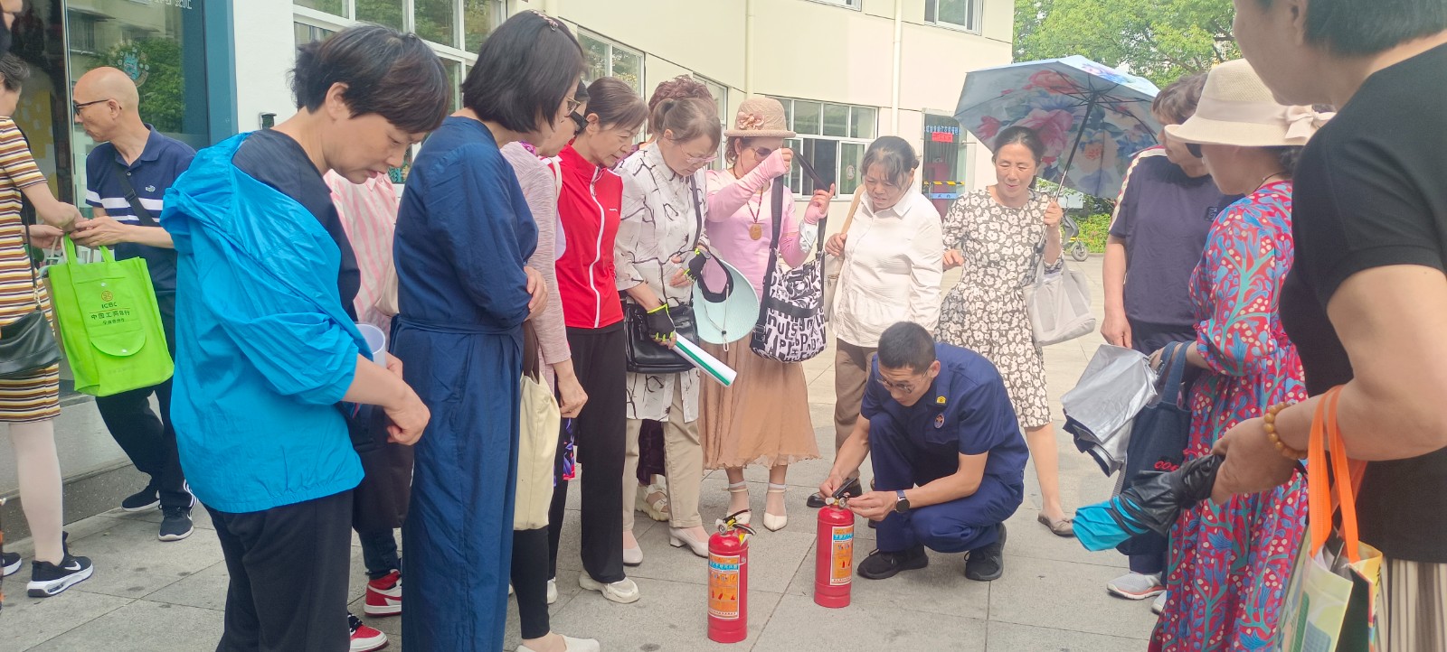 随后,消防演习正式拉开帷幕。消防员们向老年学员们展示了灭火器的正确使用方法,并进行了实地灭火演练。老年学员们积极参与,纷纷上前体验,学习如何在火灾初期迅速扑灭火源。此外,消防员们还向学员们介绍了火灾逃生的基本常识和技巧,包括如何正确使用消防器材、如何快速疏散等。